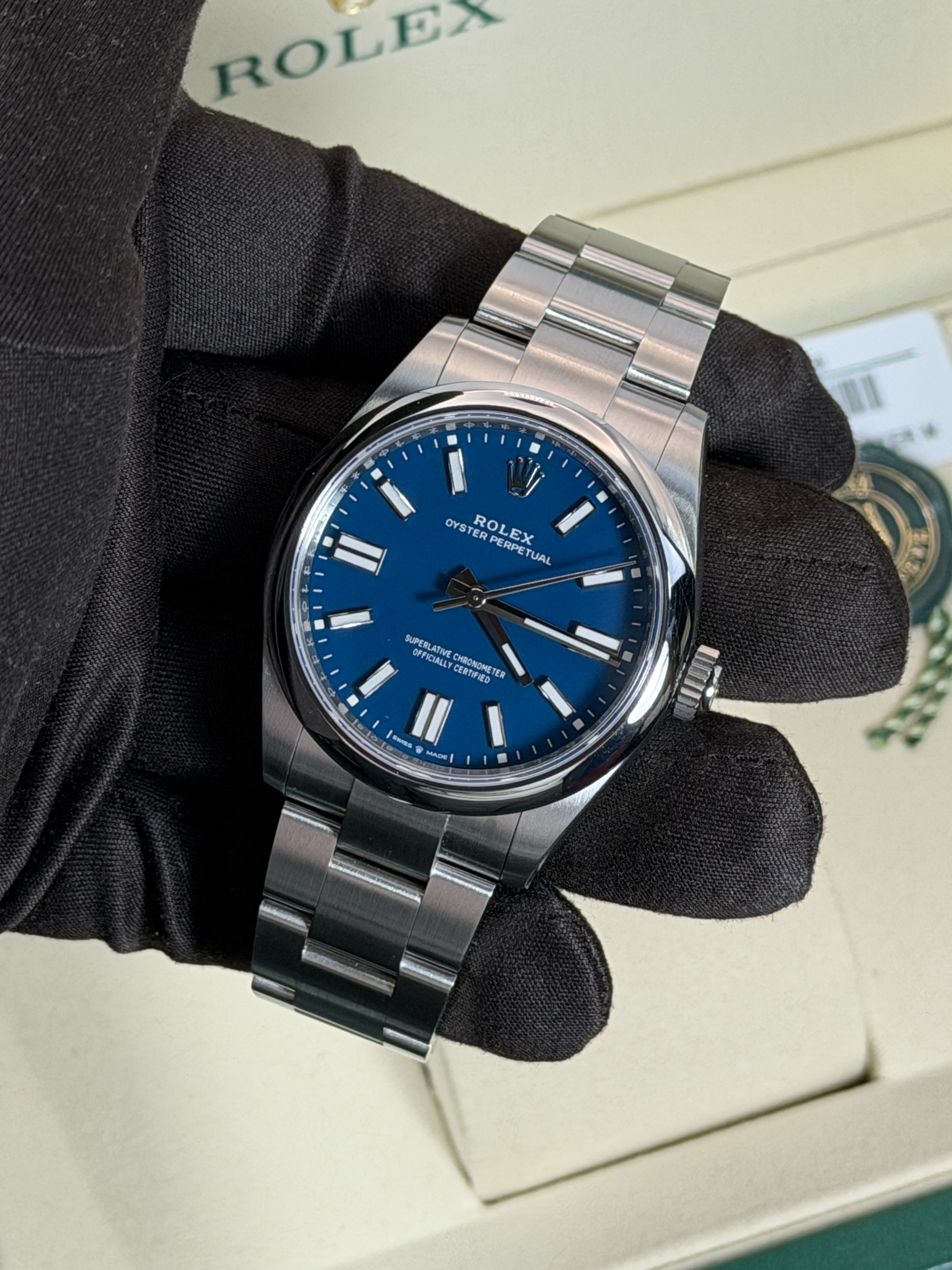 Приобретая часы Oyster Perpetual 41 mm Green Dial в нашем салоне, вы получаете не только качественный продукт, но и полный набор документов, подтверждающих их подлинность, а также оригинальную коробку. Кроме того, наши часы проходят тщательную предпродажную подготовку, что гарантирует их идеальное состояние.