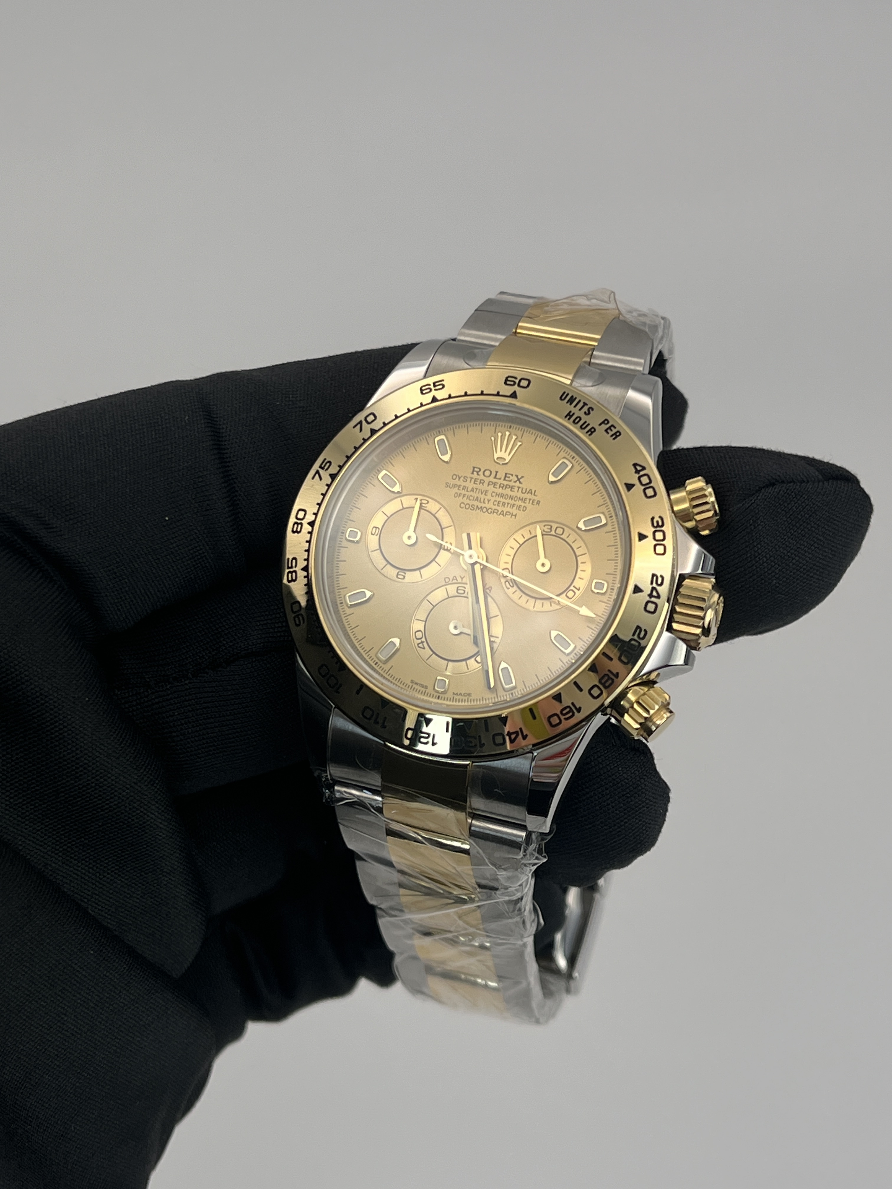 Каждые часы Oyster Perpetual Cosmograph Daytona Champagne Dial, представленные в нашем салоне, находятся в идеальном состоянии и сопровождаются полным комплектом документов и коробкой. Мы гарантируем качество и аутентичность наших товаров, предлагая 5-летнюю гарантию на все часы.