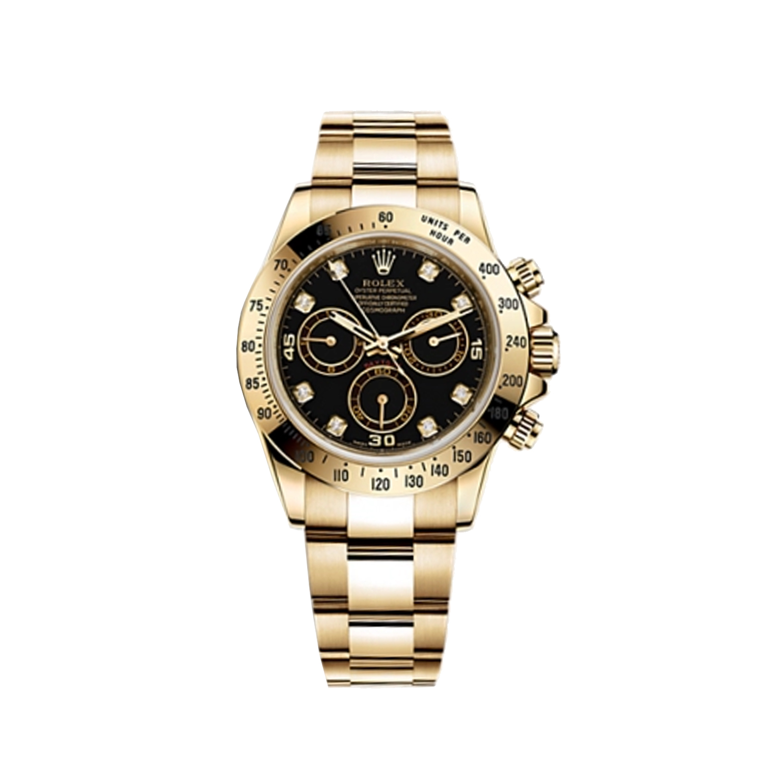 Rolex Oyster Perpetual Cosmograph Daytona Yellow Gold Diamonds Black Dial