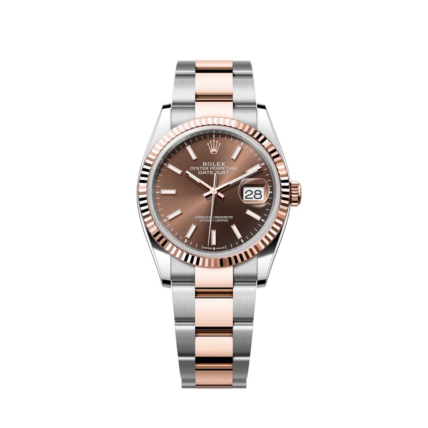 Rolex Oyster Perpetual Datejust 36 Mm Rolesor Oystersteel And Rose Gold Chocolate Dial