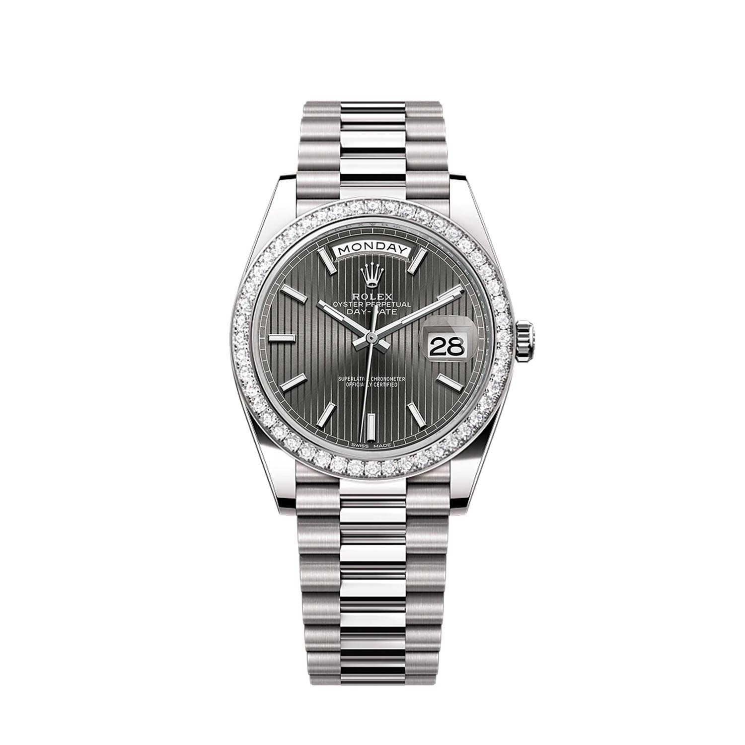 Какой подарок может быть более значимым и долговечным, чем швейцарские часы от бренда Rolex? В часовом салоне «Мануфактура» мы предлагаем вам уникальную возможность приобрести часы Oyster Perpetual Day-Date 40 mm White Gold Meteorite Dial Factory Diamonds, которые станут не только стильным аксессуаром, но и надежным спутником на протяжении многих лет.