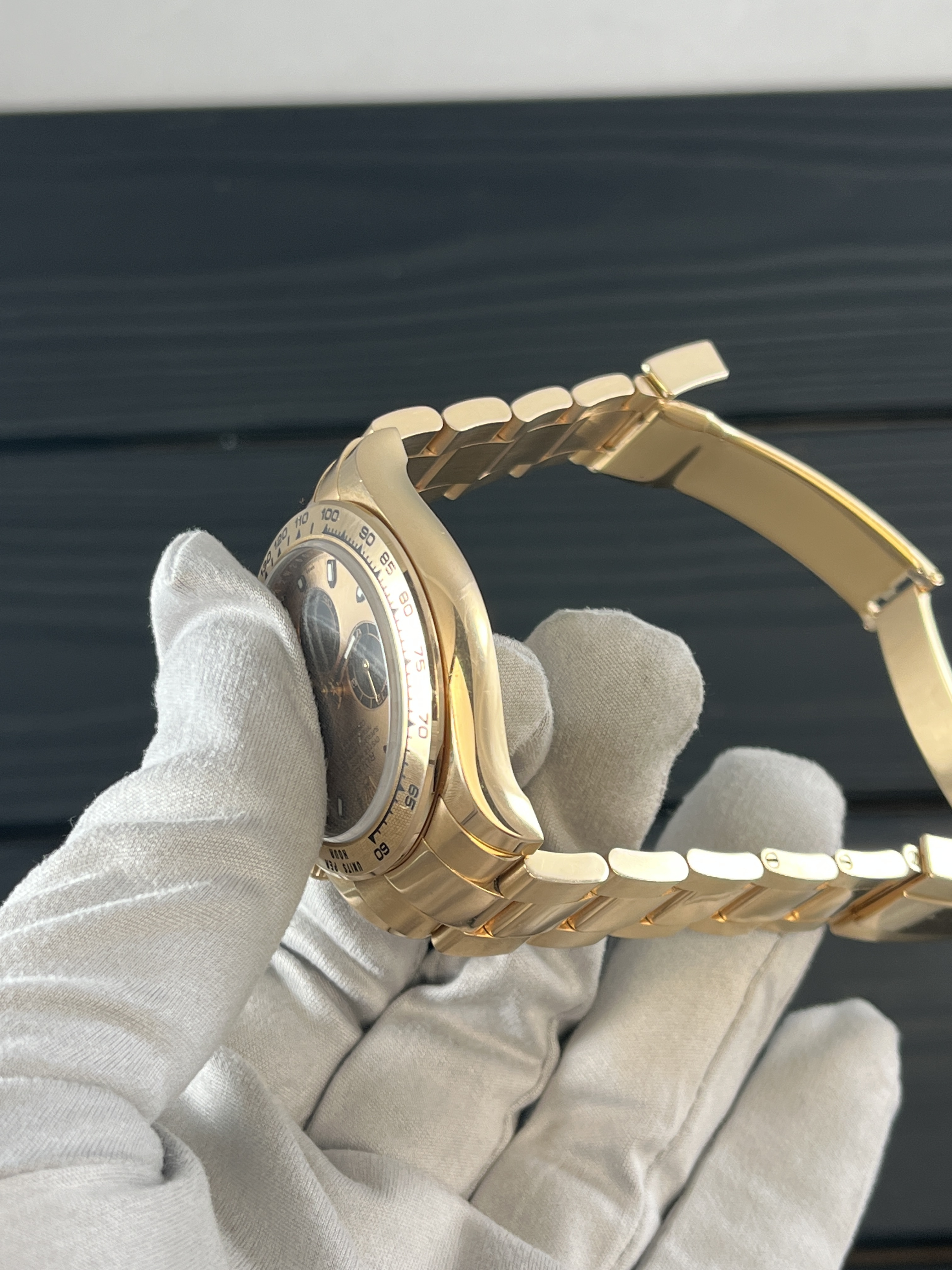 Приобретая Oyster Perpetual Daytona Rose Gold в нашем салоне, вы не только получаете статусный аксессуар, но и гарантию на 1 год. Мы ценим ваше время и предлагаем выгодные расценки на покупку швейцарских часов, а также бонусные программы для постоянных клиентов.