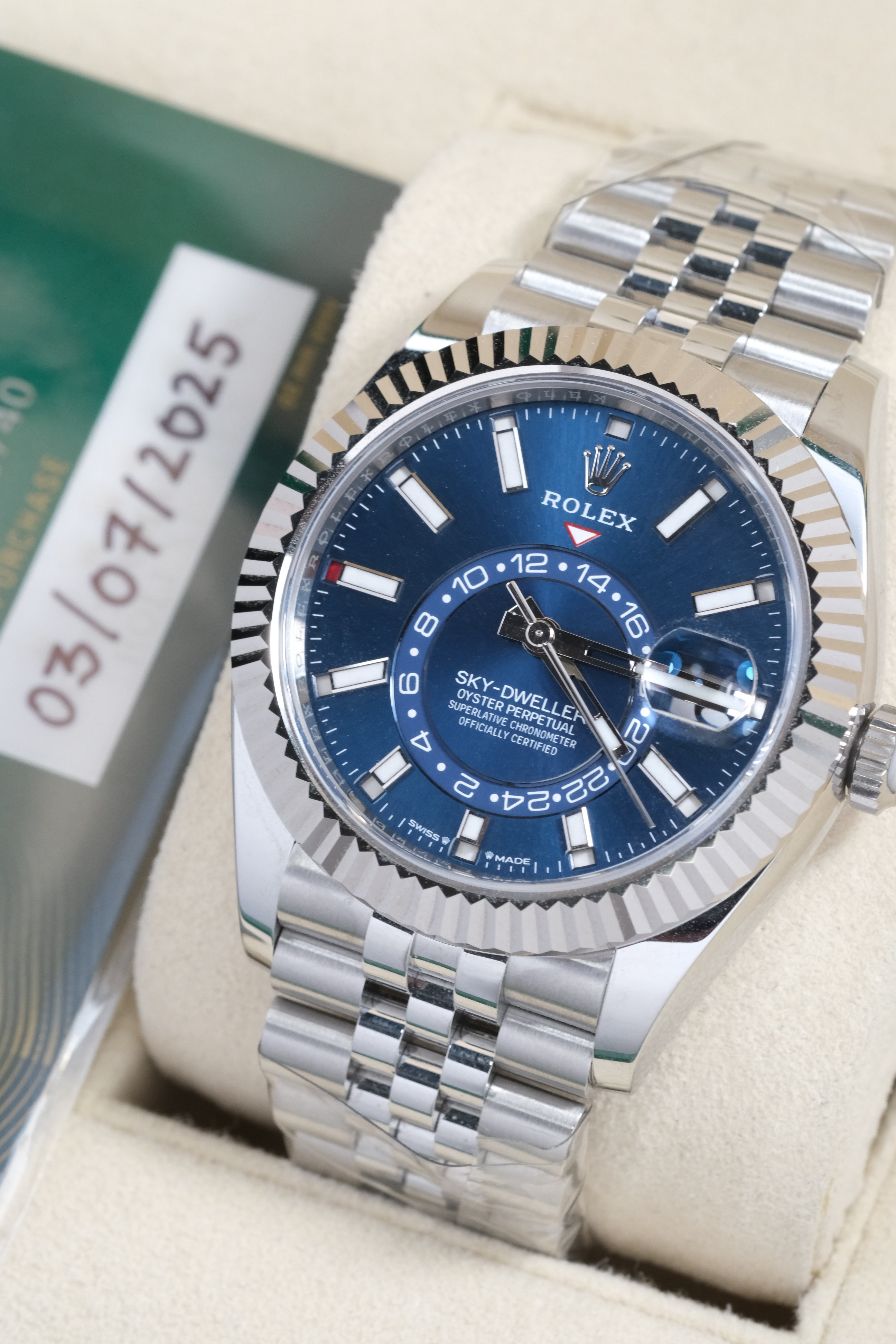 Каждые часы Oyster Perpetual Sky-Dweller Blue Dial, представленные в нашем салоне, находятся в идеальном состоянии и сопровождаются полным комплектом документов, подтверждающих их подлинность и качество. Мы гарантируем безопасность сделки и предлагаем выгодные расценки на покупку, а также бонусные программы для постоянных клиентов.