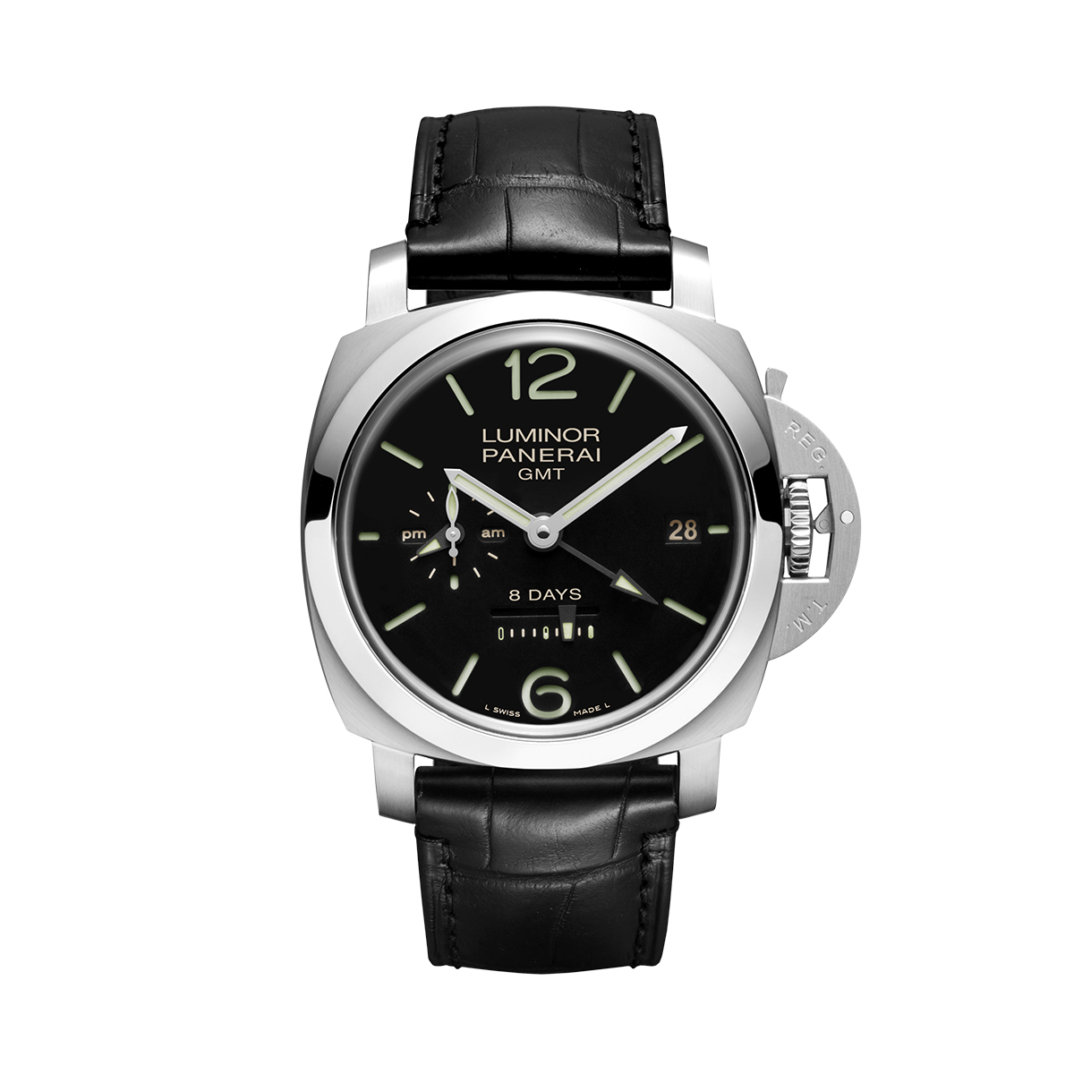 Luminor 1950 8 Days GMT обладает рядом уникальных функций, среди которых индикатор запаса хода, индикатор день/ночь и 24-х часовая индикация, что делает его незаменимым помощником в любой ситуации. Особенно стоит отметить механический калибр P.2002/1 с ручным заводом, обеспечивающий запас хода в 8 дней.