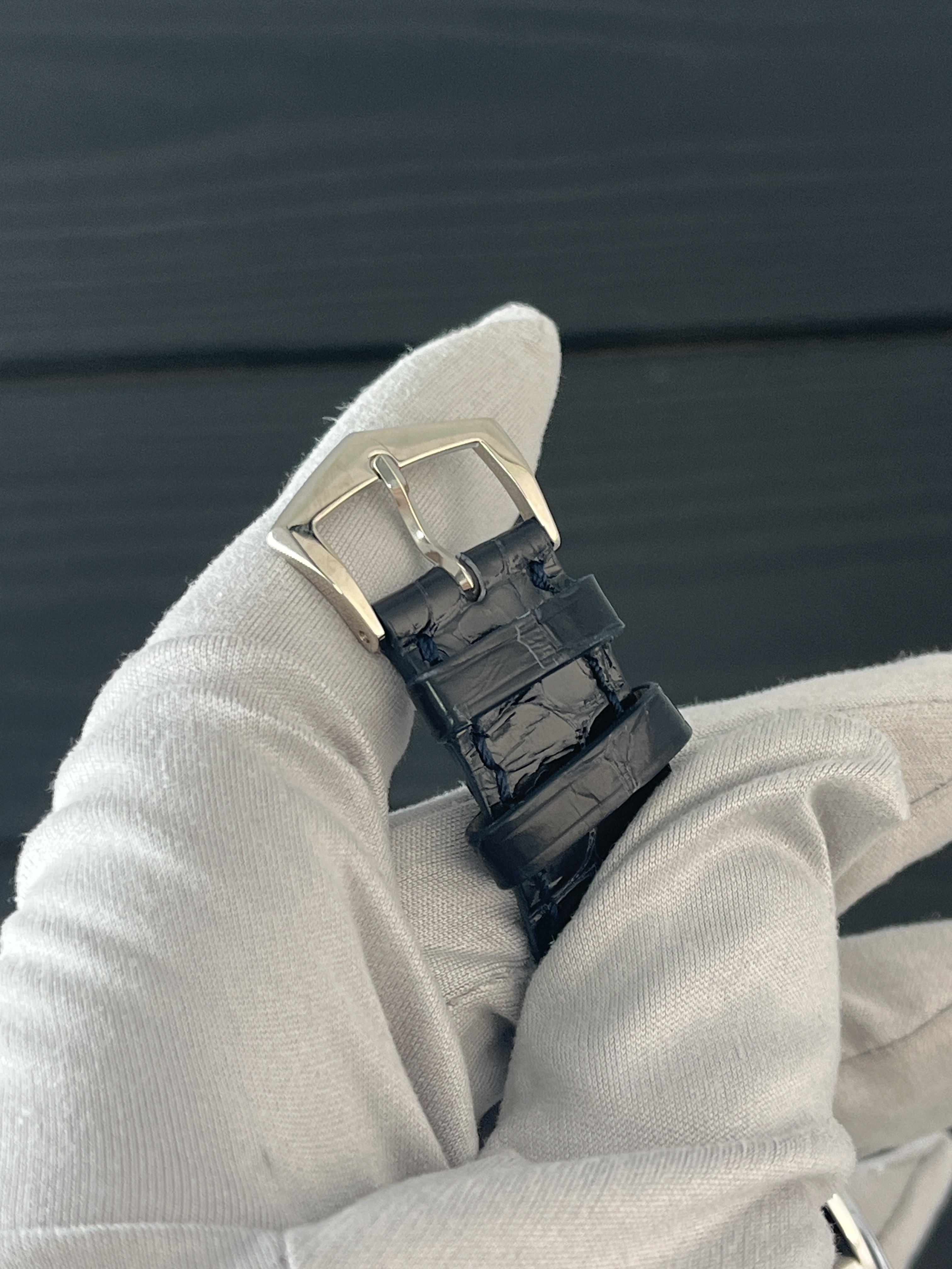 Часы 10-Day Manual White Gold выполнены из белого золота, что придает им особую изысканность и элегантность. Размер корпуса составляет 46 на 33.9 мм, что делает их идеальными для мужской руки. Ремешок из натуральной кожи добавляет дополнительный акцент на комфорт и стиль.