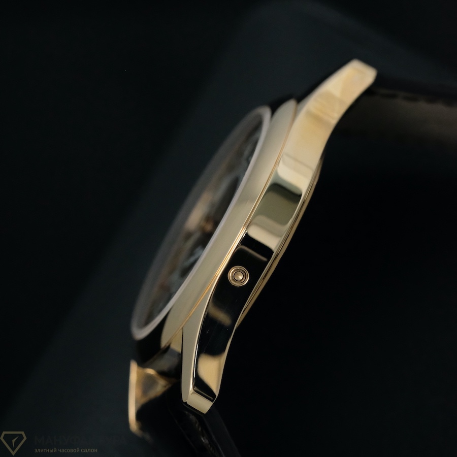 Эти часы выполнены из розового золота, что придает им особую изысканность и элегантность. Их корпус имеет размер 37 мм, что делает их идеальными для мужчины, ценящего утонченность и стиль. Ремешок из натуральной кожи добавляет дополнительный штрих комфорта и элегантности.