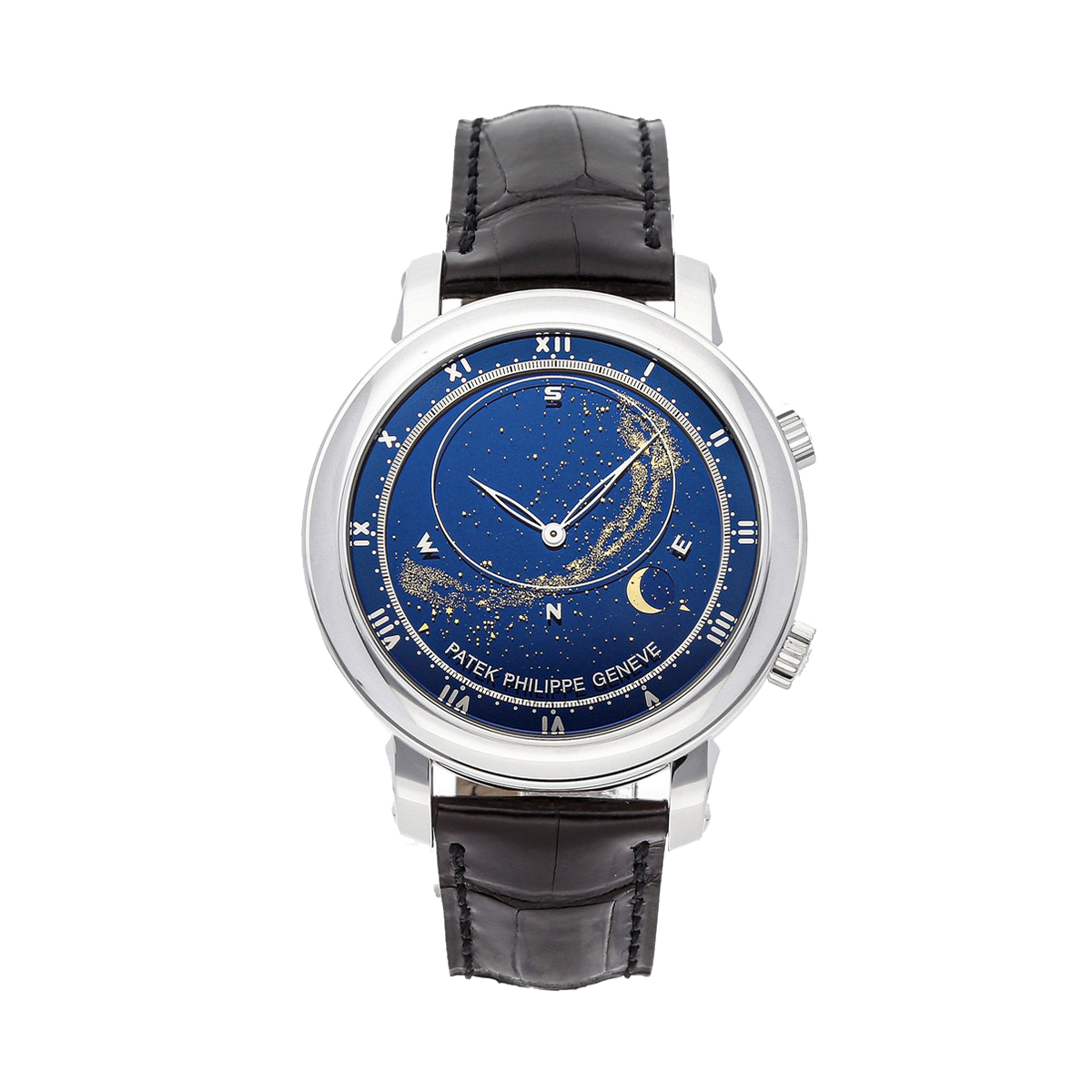 Эти часы представляют собой настоящий шедевр часового искусства, сочетая в себе сложные функции и изысканный дизайн. Корпус выполнен из белого золота, что придает часам особую роскошь и элегантность. Ремешок из натуральной кожи добавляет дополнительный акцент на комфорт и стиль.
