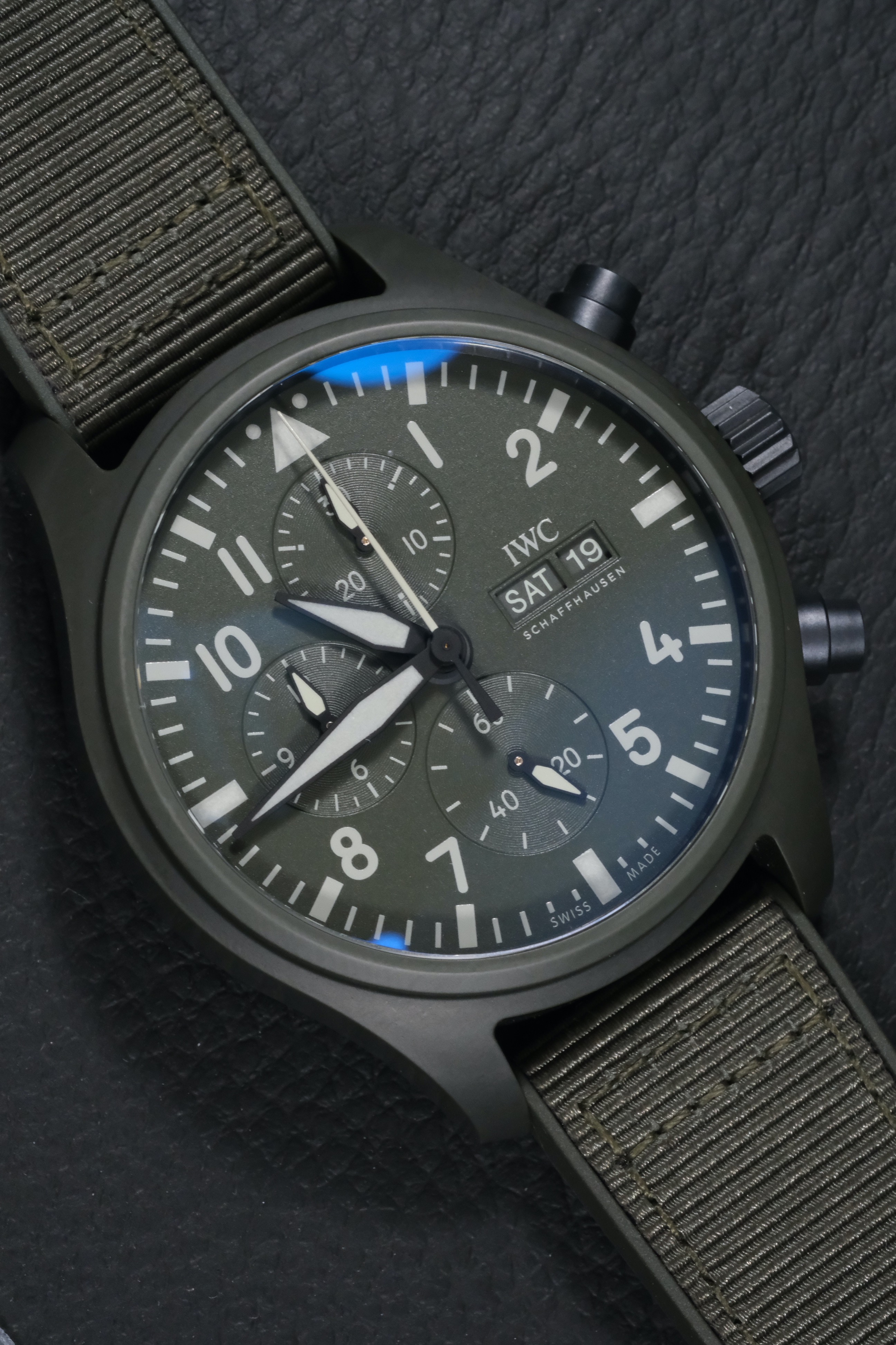 Часы PILOT'S WATCH CHRONOGRAPH TOP GUN EDITION WOODLAND выполнены из керамики, что делает их не только прочными, но и легкими. Размер корпуса составляет 44.5 мм, что идеально подходит для мужской руки. Сапфировое стекло обеспечивает отличную видимость и защищает механизм от повреждений. Водонепроницаемость до 60 метров делает эти часы идеальными для любителей активного образа жизни.