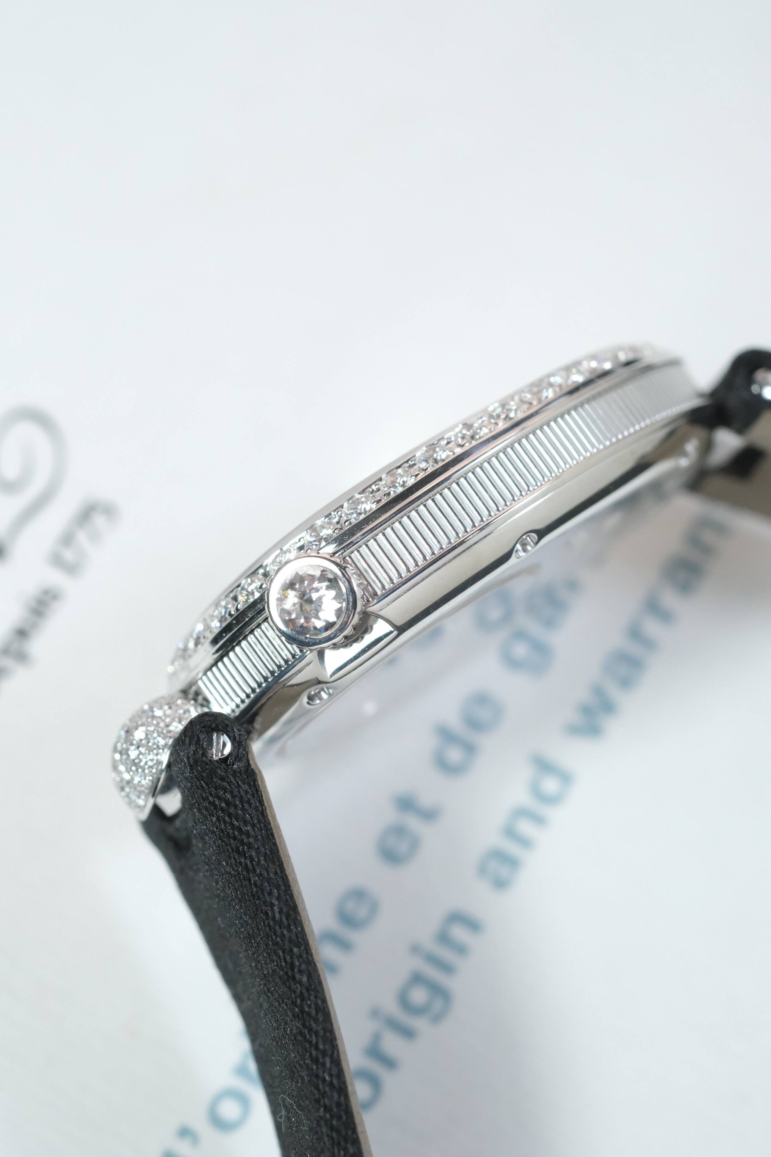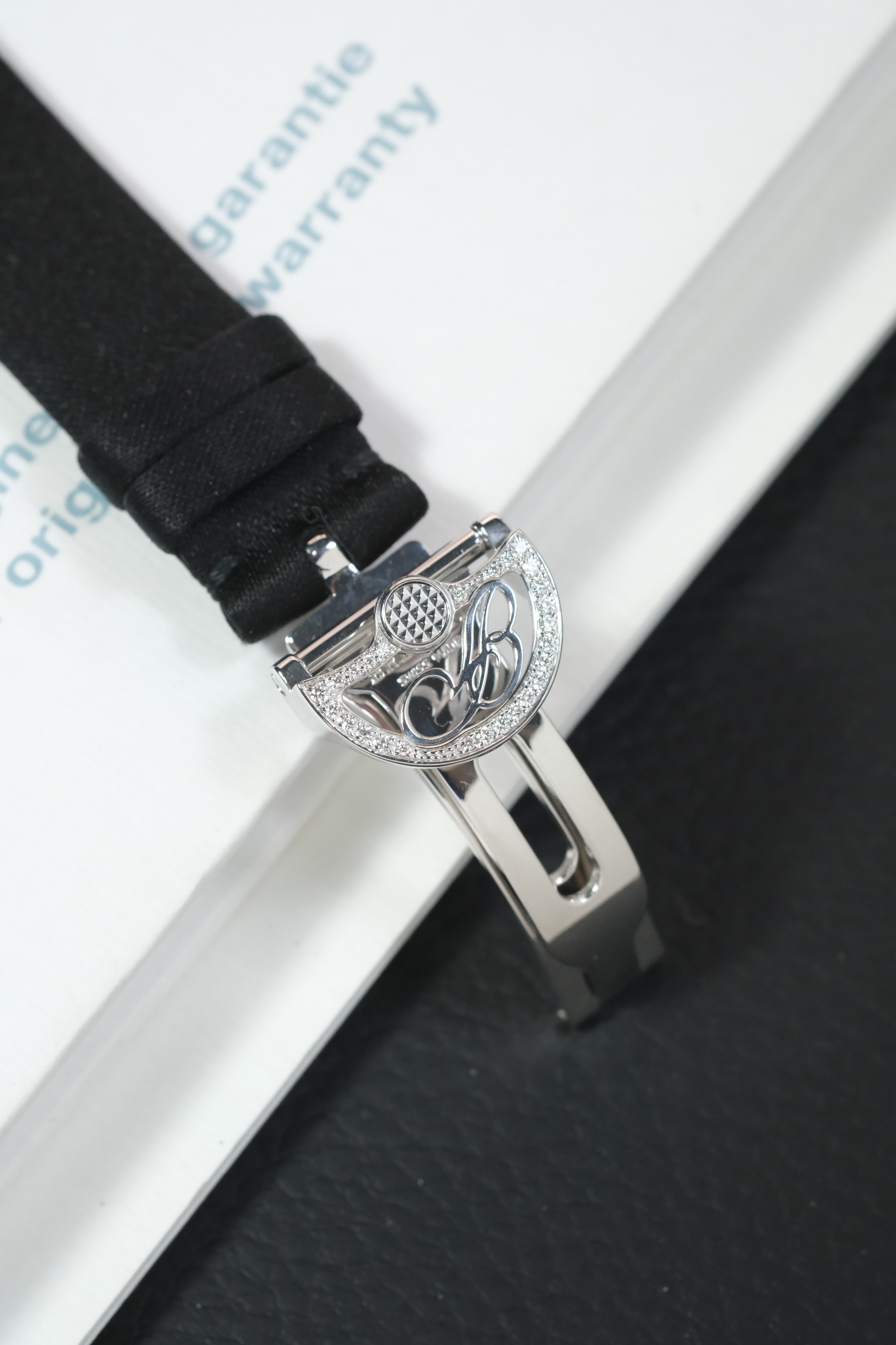 Эти часы, выполненные из белого золота и украшенные бриллиантами, представляют собой образец элегантности и изысканности. Их размер 29,0 х 37,0 мм делает их идеальными для женской руки, подчеркивая ее утонченность и стиль. Механизм с автоподзаводом обеспечивает точность и надежность работы часов, а кожаный ремешок добавляет им дополнительный шарм и комфорт в носке.