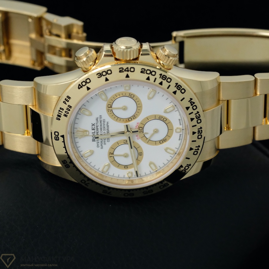 Приобретая часы Cosmograph Daytona 40mm Yellow Gold White Dial в нашем часовом салоне «Мануфактура», вы не только получаете высококачественный продукт, но и гарантию безопасности сделки, а также возможность воспользоваться выгодными расценками и бонусными программами. Наш салон предлагает удобное расположение офиса в Москве и собственную охраняемую парковку, что делает процесс покупки еще более комфортным и безопасным.