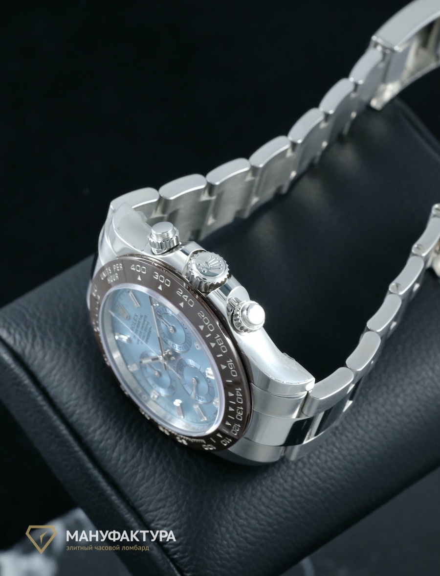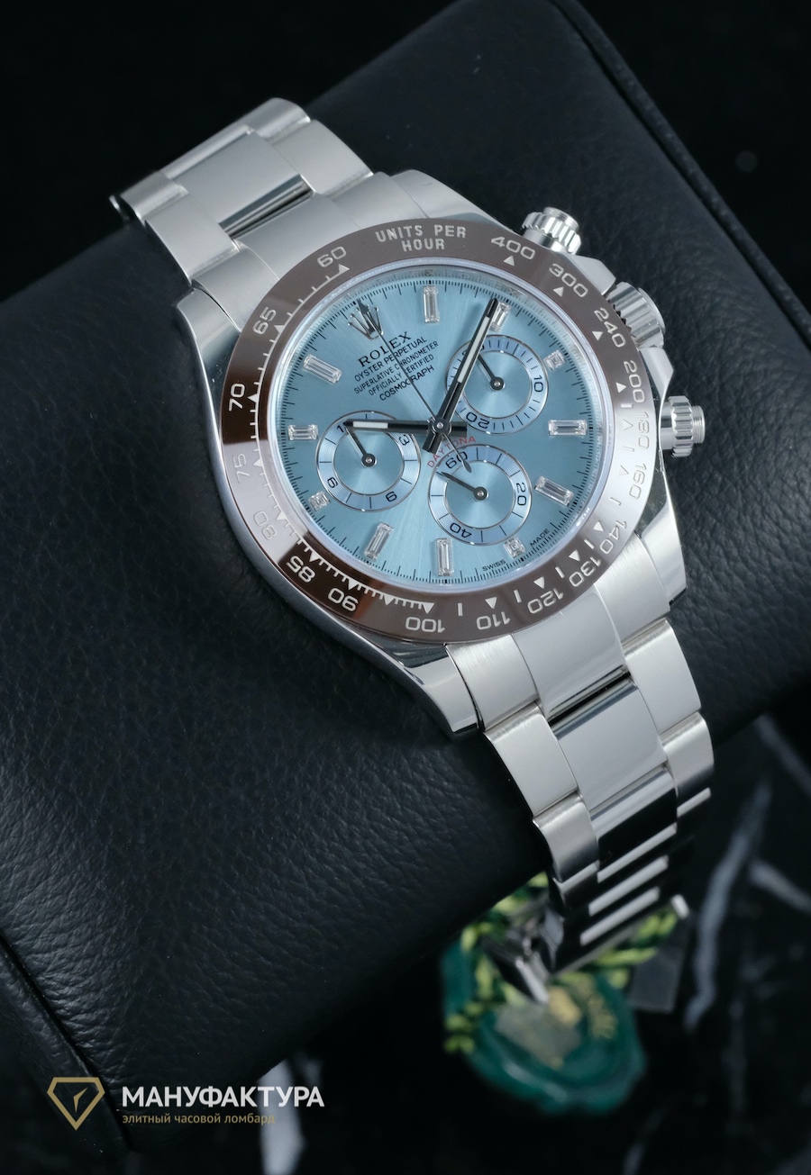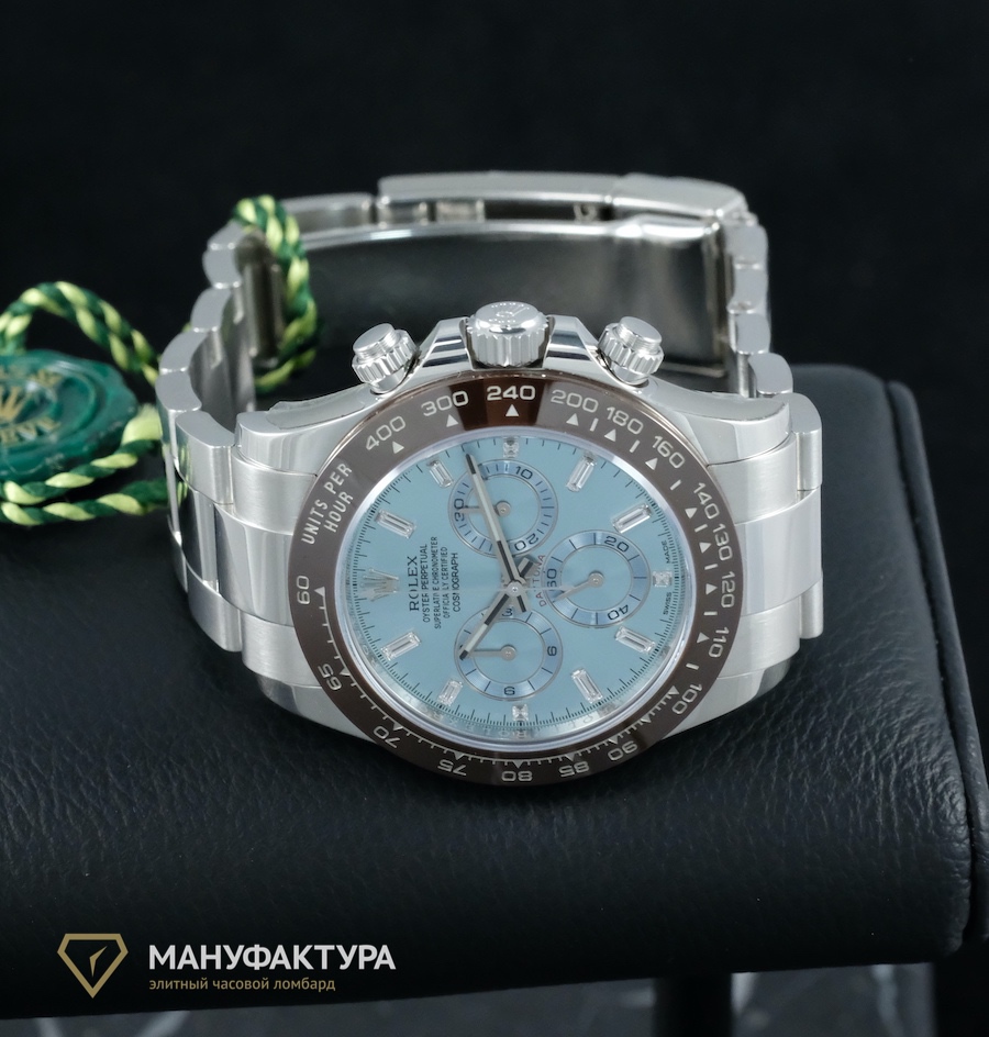 Вашему вниманию предлагается эксклюзивный шедевр швейцарского часового искусства – Cosmograph Daytona Platinum Baguette Diamond Dial от легендарного бренда Rolex. Этот уникальный экземпляр, представленный в нашем часовом салоне «Мануфактура», станет идеальным аксессуаром для истинных ценителей роскоши и стиля.