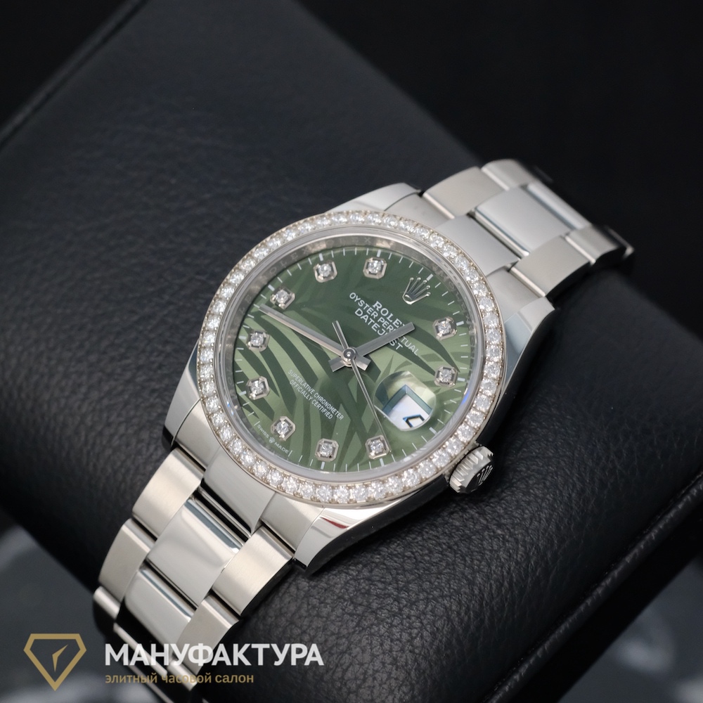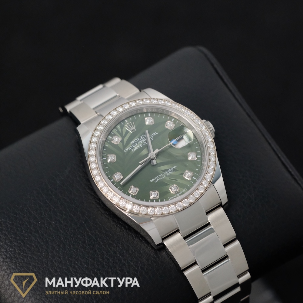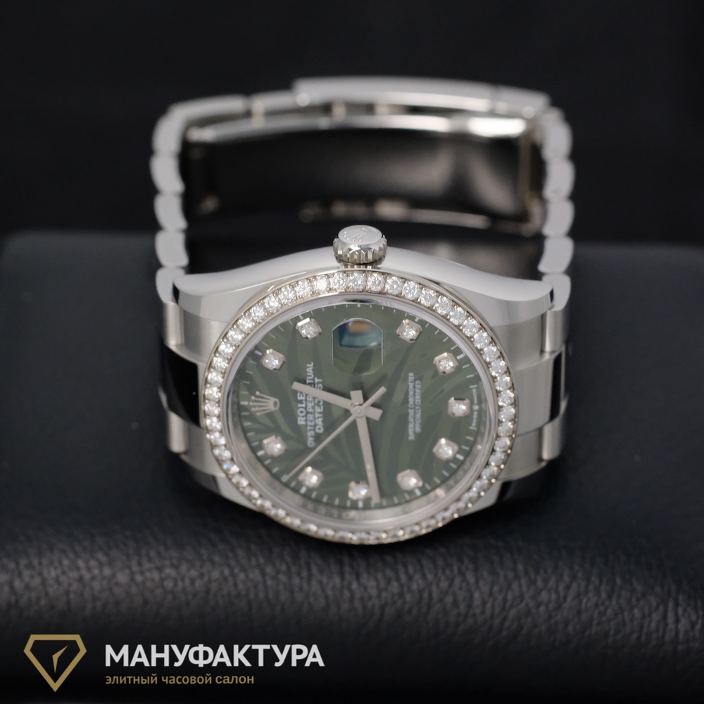 Rolex Datejust 36 Oystersteel And White Gold Diamonds Bezel Palm Motif
