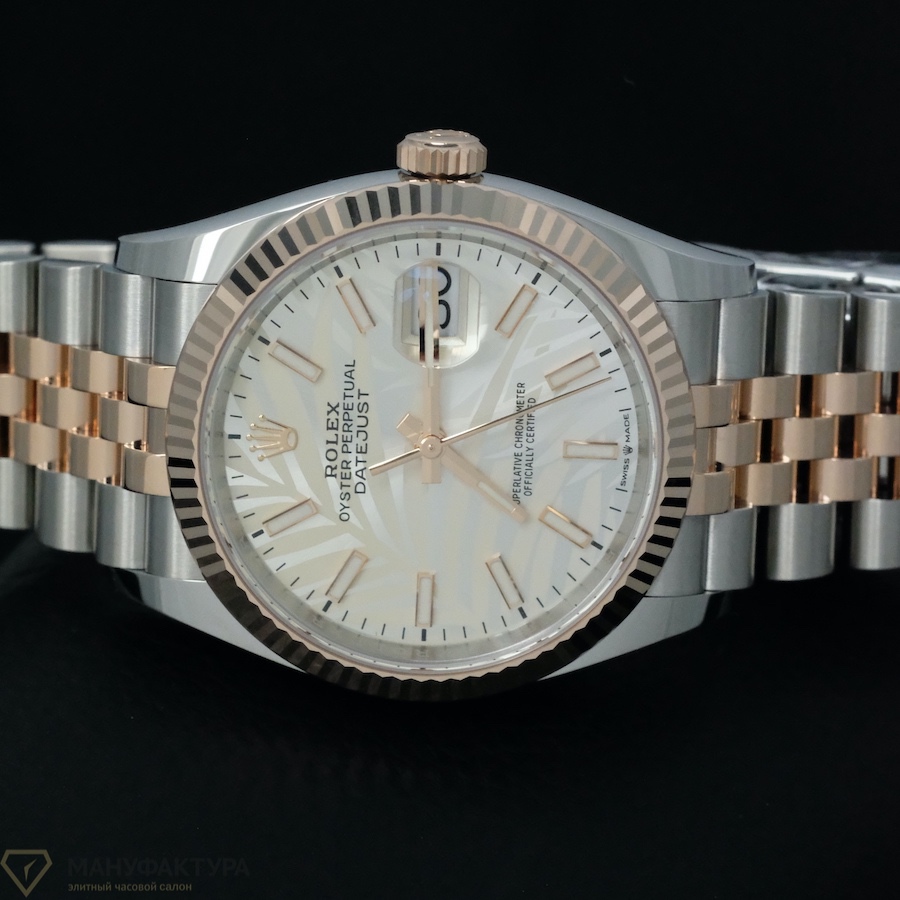 В поисках идеальных часов, которые станут не только стильным аксессуаром, но и надежным спутником на протяжении многих лет, обратите внимание на шедевр от Rolex - Datejust 36mm Steel & Rose Gold Palm Dial 2022. Этот изысканный экземпляр, представленный в нашем часовом салоне «Мануфактура», станет прекрасным выбором для тех, кто ценит качество, стиль и функциональность.