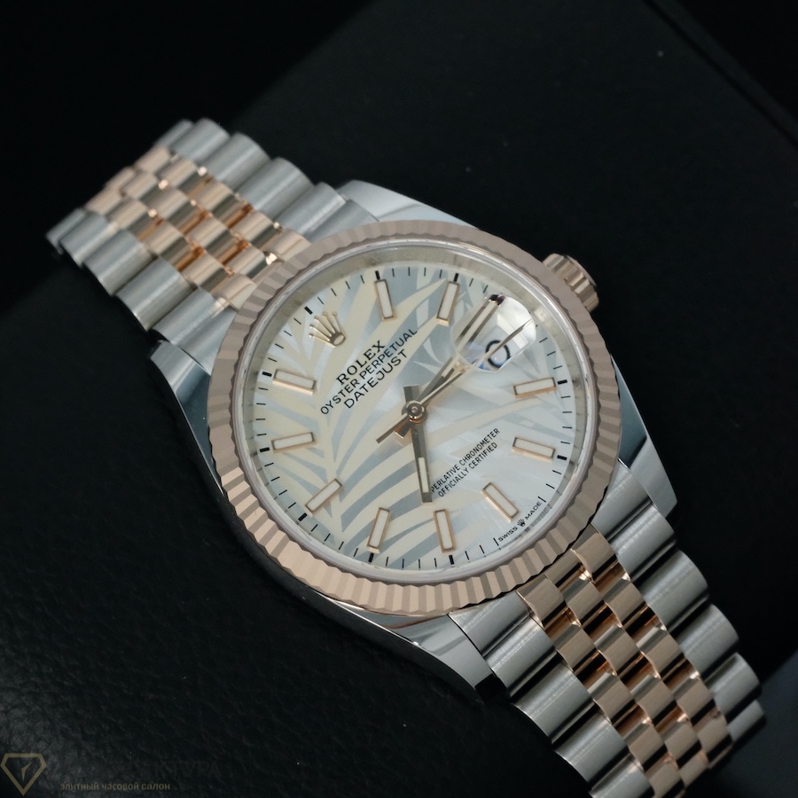 Datejust 36mm Steel & Rose Gold Palm Dial 2022 оснащены калибром 3235, который обеспечивает точность и надежность хода. Автоподзавод и функция отображения даты делают эти часы не только красивыми, но и практичными. Водонепроницаемость на глубину до 100 метров позволяет не беспокоиться о безопасности механизма даже при активном образе жизни.