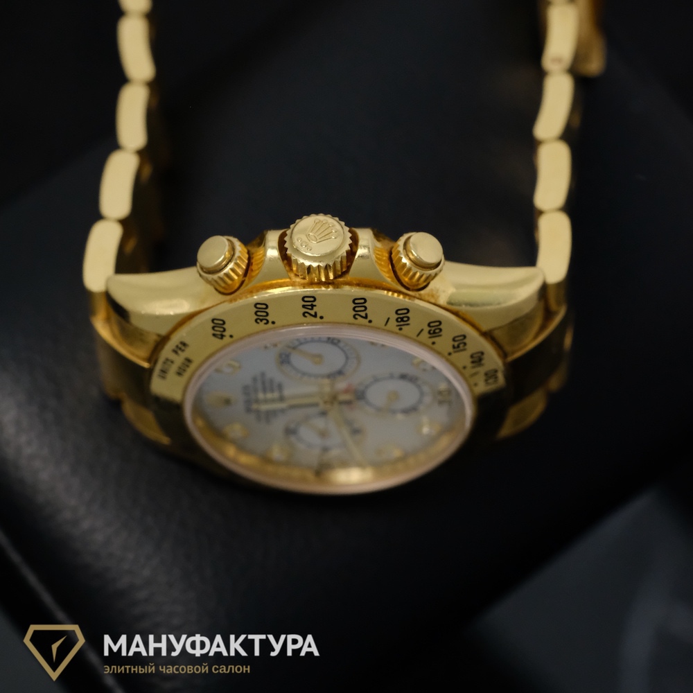 В мире часов и ювелирных изделий есть бренды, которые не нуждаются в представлении. Одним из таких имен является Rolex, символ качества и стиля. Именно поэтому мы в часовом салоне «Мануфактура» рады предложить вашему вниманию уникальные часы Daytona Yellow Gold White MOP Dial, которые станут идеальным дополнением к вашему образу.