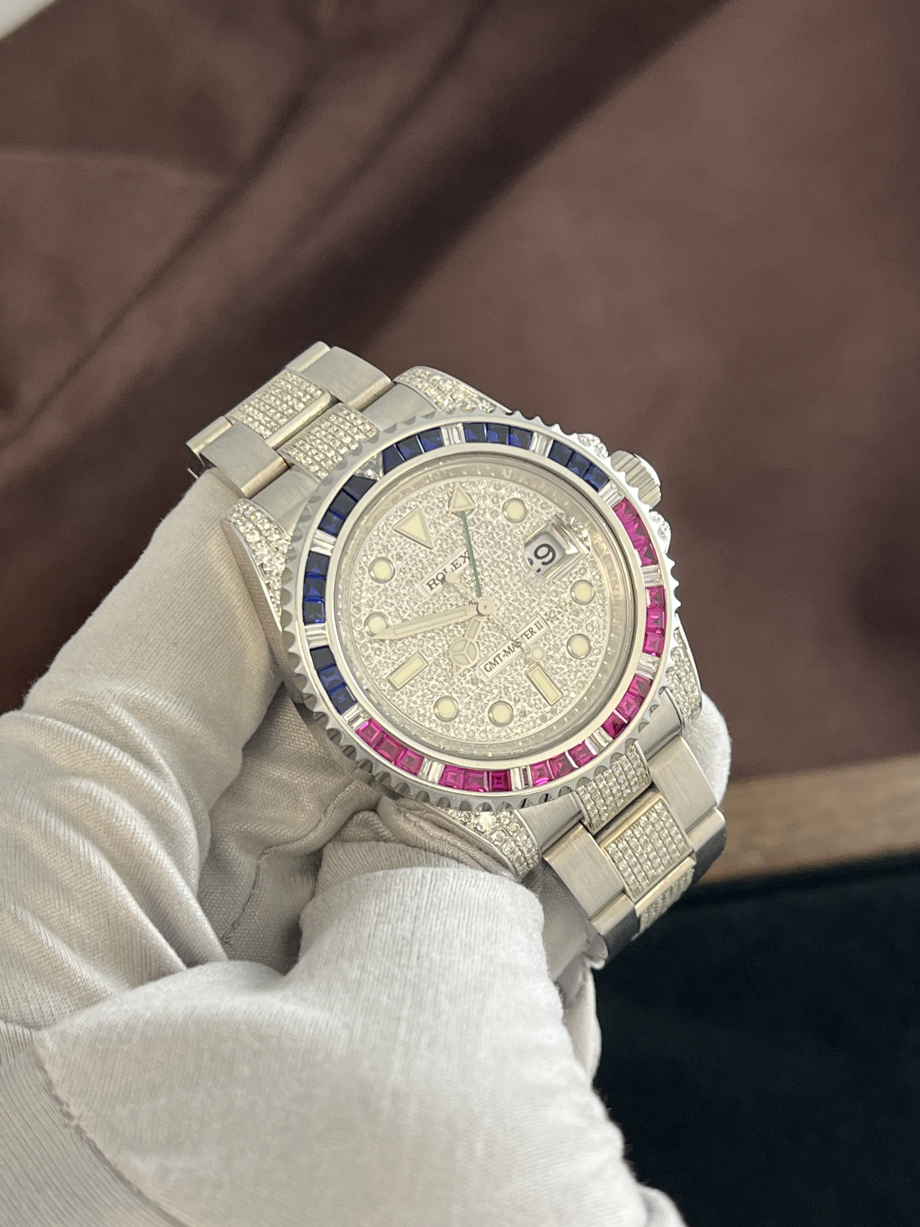 Какой часовой бренд ассоциируется у вас с непревзойденным качеством, стилем и статусом? Безусловно, это Rolex. Именно поэтому мы рады предложить вашему вниманию уникальные часы GMT Master II Pepsi Custom от этого легендарного швейцарского производителя. Эти часы не просто украшение для вашего запястья, а настоящий шедевр часовщиков, который гарантирует не только точность и надежность, но и неповторимый стиль.