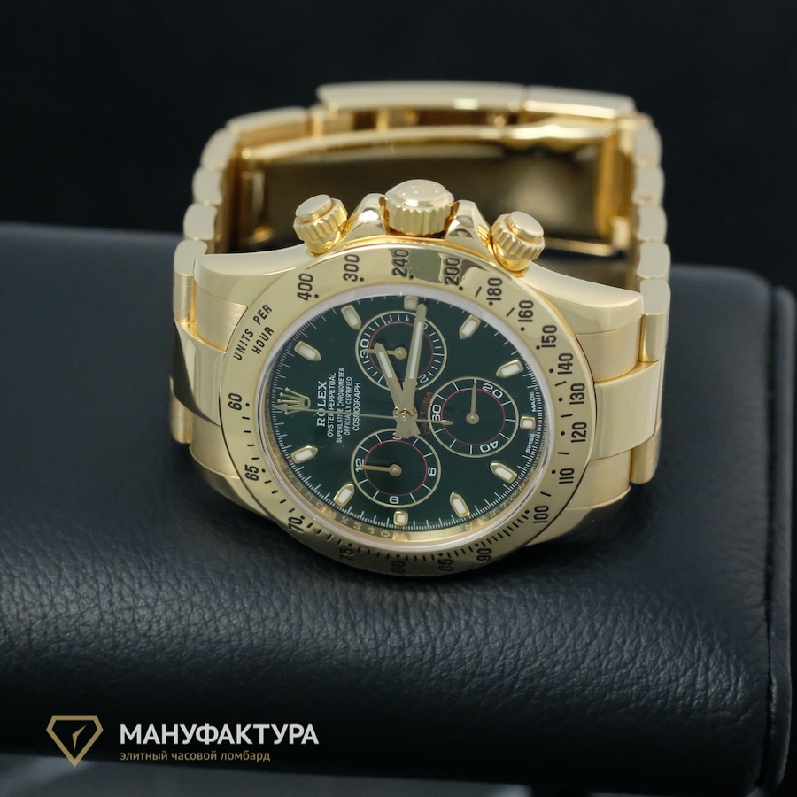 В мире часов и ювелирных изделий существует особый уровень мастерства и качества, который достигается лишь немногими брендами. Одним из таких брендов является Rolex, и именно его шедевр, Oyster Perpetual Cosmograph Daytona Yellow Gold Original Green Dial Special Order, мы предлагаем вашему вниманию в нашем часовом салоне «Мануфактура».