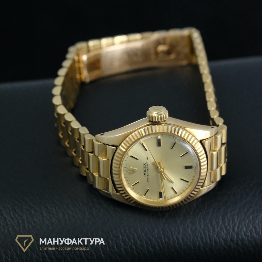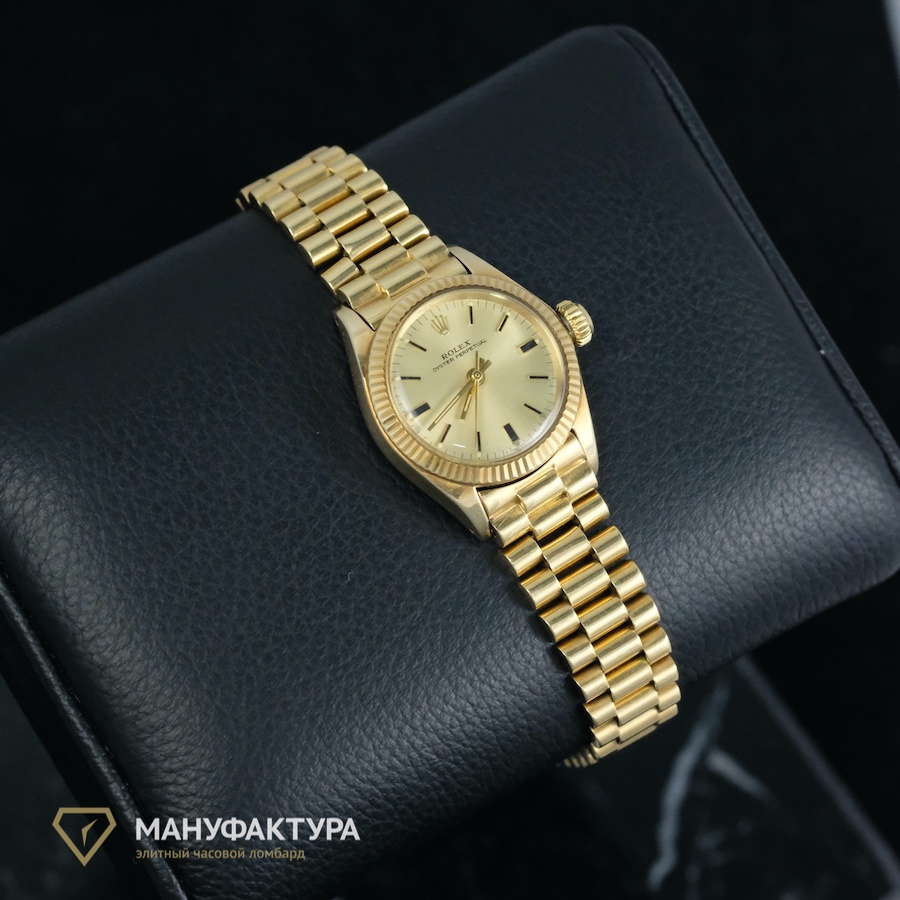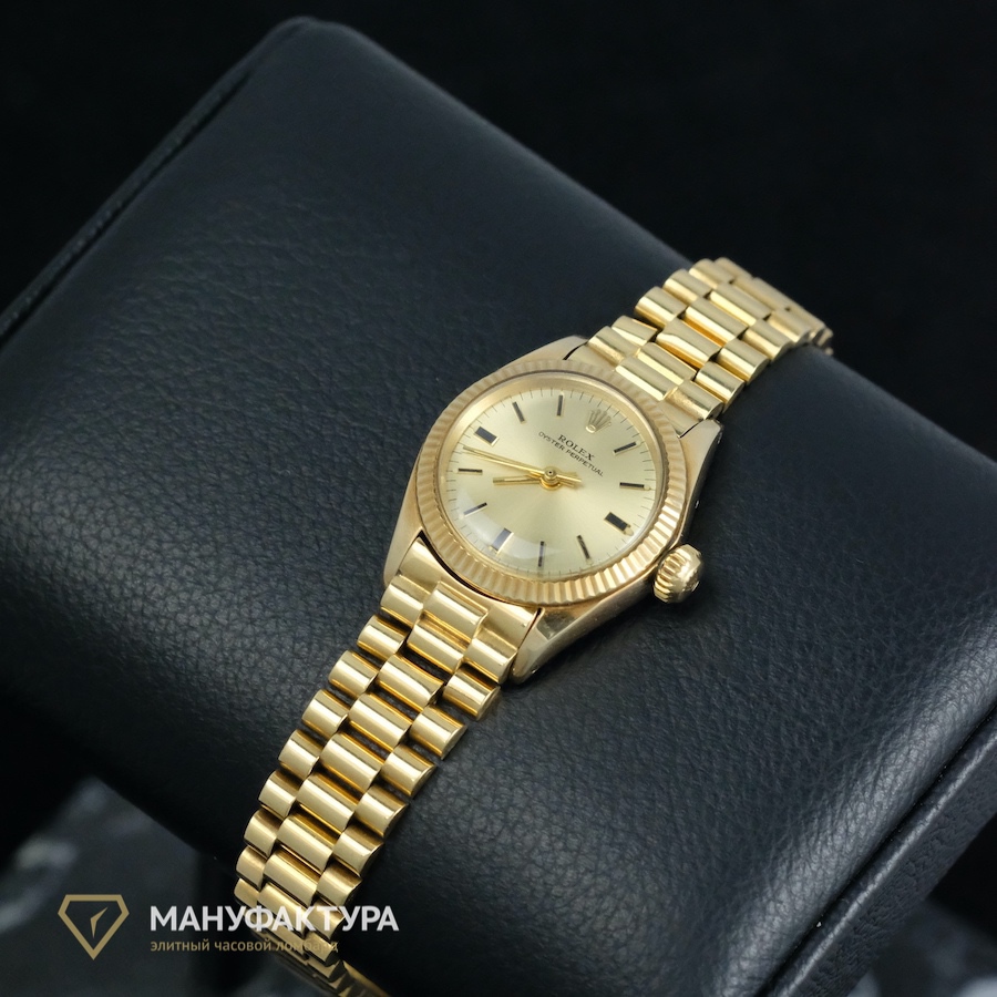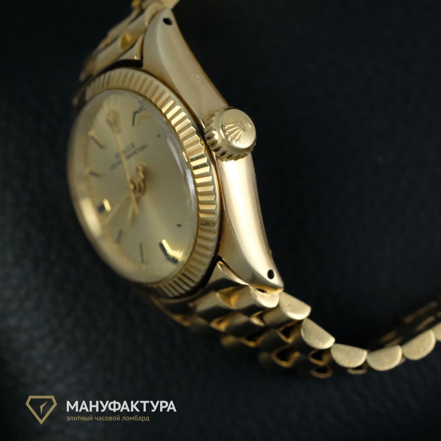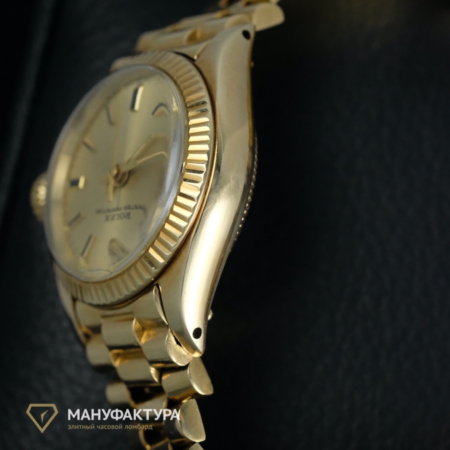 Часы Oyster Perpetual Lady Vintage, модель 6619, выполнены из желтого золота и имеют размер 24 мм, что делает их идеальными для женской руки. Браслет из того же материала добавляет изделию дополнительный шарм и элегантность. Сапфировое стекло обеспечивает отличную видимость циферблата и добавляет часам дополнительную прочность.