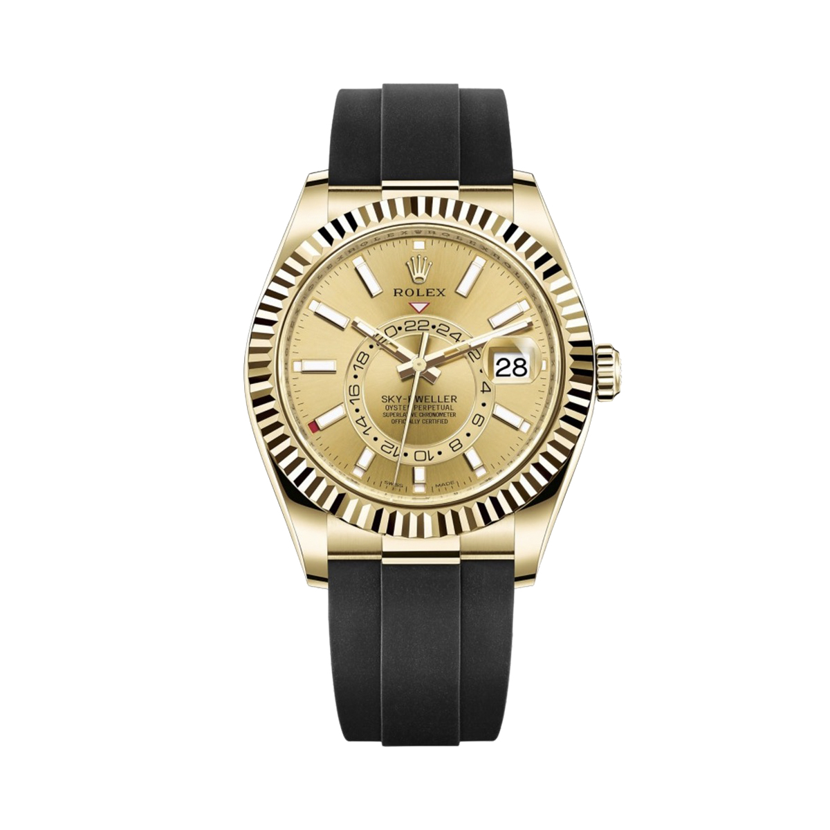 Эти часы – настоящий шедевр швейцарского часового искусства, выполненный из желтого золота и оснащенный сапфировым стеклом, которое обеспечивает максимальную защиту от царапин и повреждений. Ремешок из каучука не только добавляет комфорта при ношении, но и подчеркивает спортивный стиль модели.