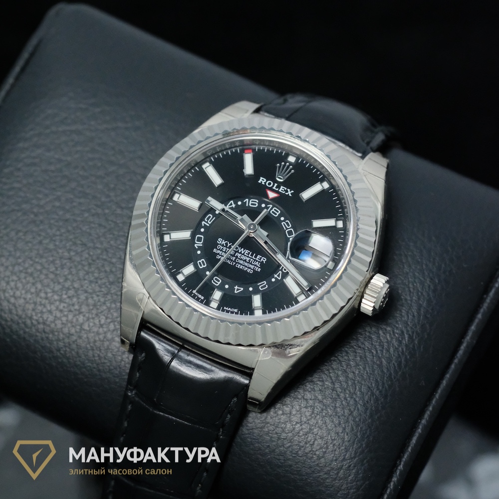 Какой часовой бренд ассоциируется у вас с непревзойденным качеством, стилем и статусом? Безусловно, это Rolex. Именно поэтому мы в часовом салоне «Мануфактура» предлагаем вашему вниманию уникальные и стильные часы Sky-Dweller White Gold Leather Strap от этого легендарного бренда.