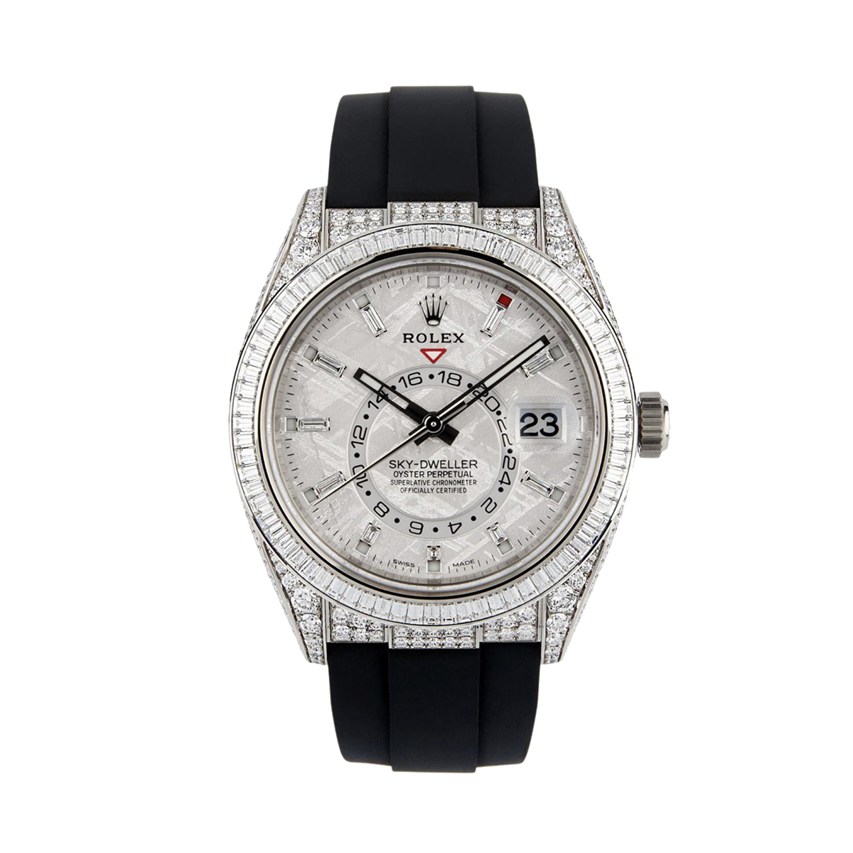 Часы Sky-Dweller White Gold Meteorite Dial – это не просто аксессуар, это произведение искусства, созданное из белого золота и украшенное бриллиантами. Их уникальный дизайн, сочетающий в себе классические черты и современные технологии, делает их настоящим шедевром. Размер корпуса 42 мм идеально подходит как для мужчин, так и для женщин, предпочитающих крупные модели.