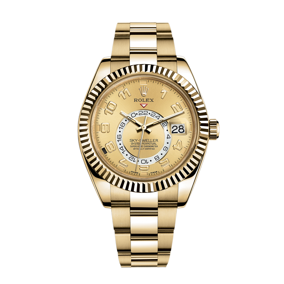 Часы Sky-Dweller Yellow Gold выполнены из желтого золота, что придает им особую роскошь и элегантность. Размер корпуса составляет 42 мм, что делает их идеальными для мужской руки. Браслет, выполненный из того же желтого золота, обеспечивает комфортное ношение и подчеркивает статус владельца.