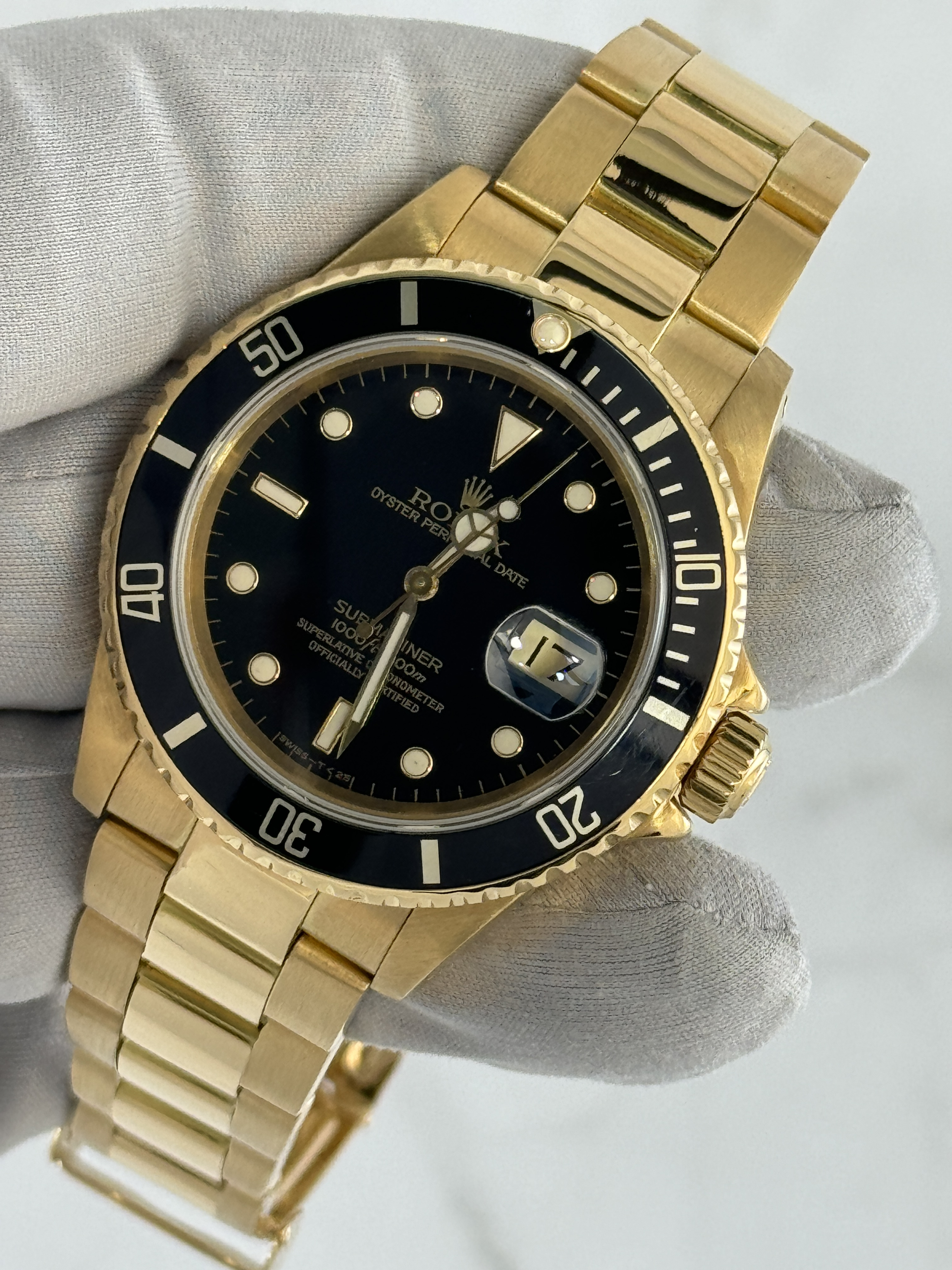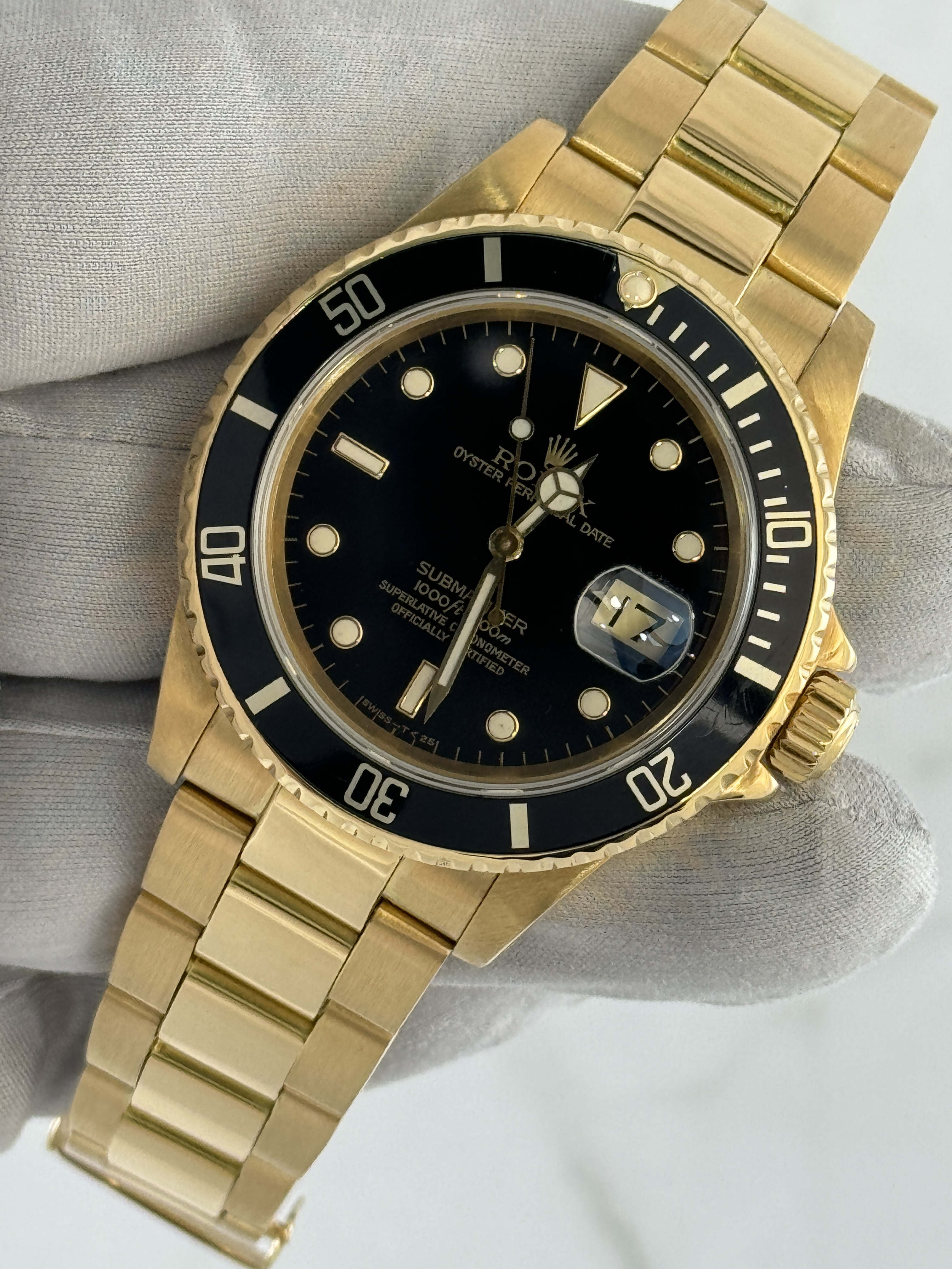 Созданные в 1991 году, эти часы SUBMARINER YELLOW GOLD WATCH BLACK DIAL отражают все лучшие традиции бренда Rolex, известного своей безупречной репутацией и высочайшим качеством продукции. Корпус из желтого золота придает часам роскошный и элегантный вид, который идеально сочетается с черным циферблатом. Браслет из того же материала добавляет дополнительный акцент на статусность и стиль владельца.