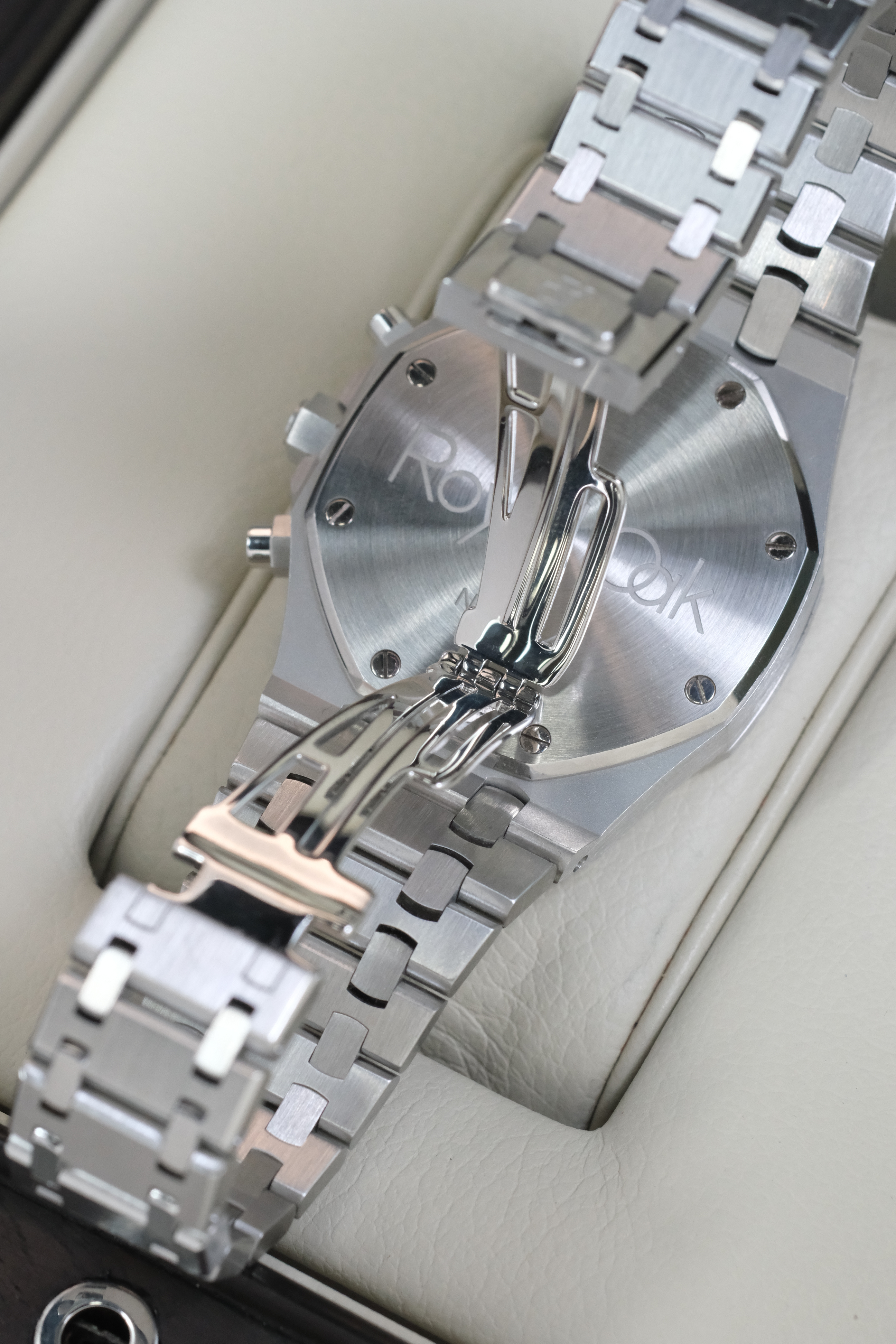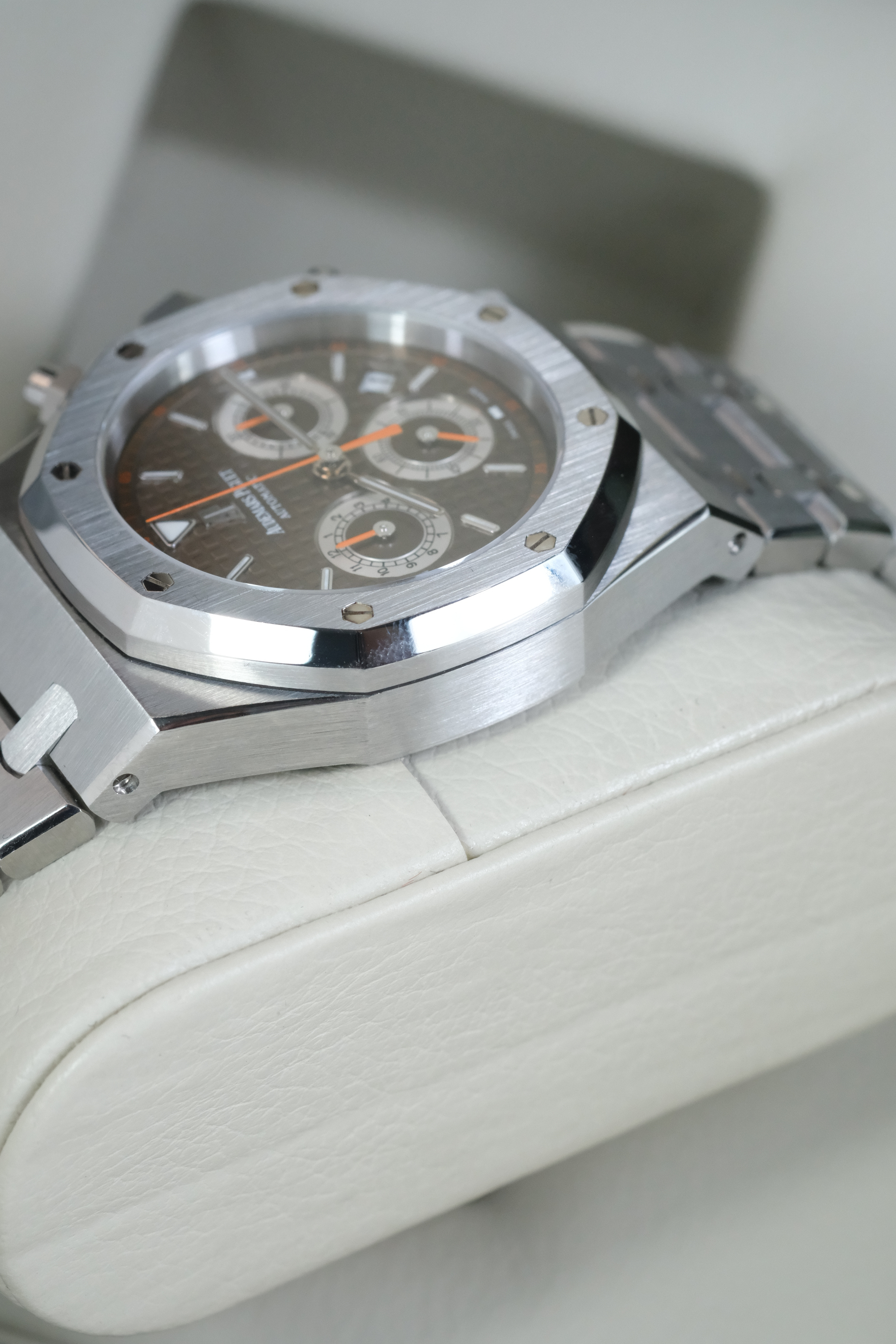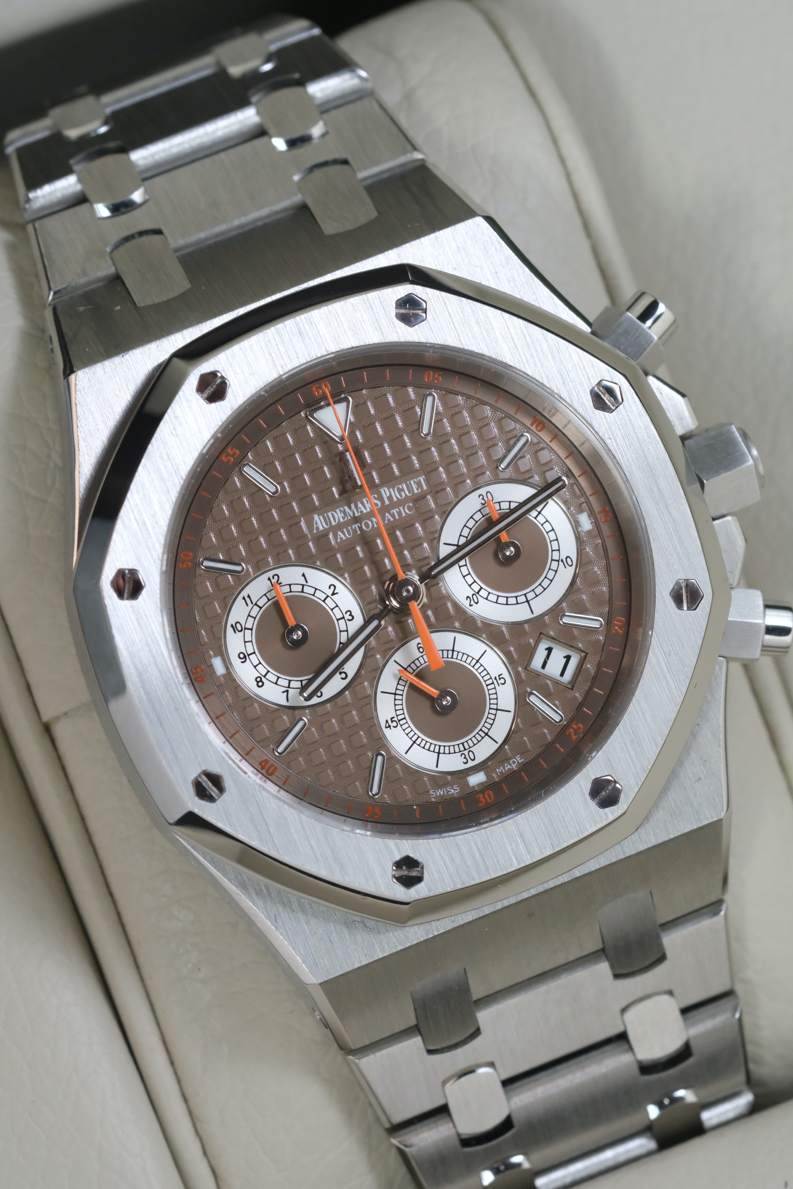 Модель Royal Oak Chronograph 39 mm Brown Dial, выпущенная в 2010 году, является настоящим произведением искусства. Ее корпус, изготовленный из стали, поражает своей изысканностью и прочностью. Браслет, выполненный из того же материала, гармонично дополняет общий дизайн часов, делая их еще более привлекательными для истинных ценителей швейцарского часового искусства.