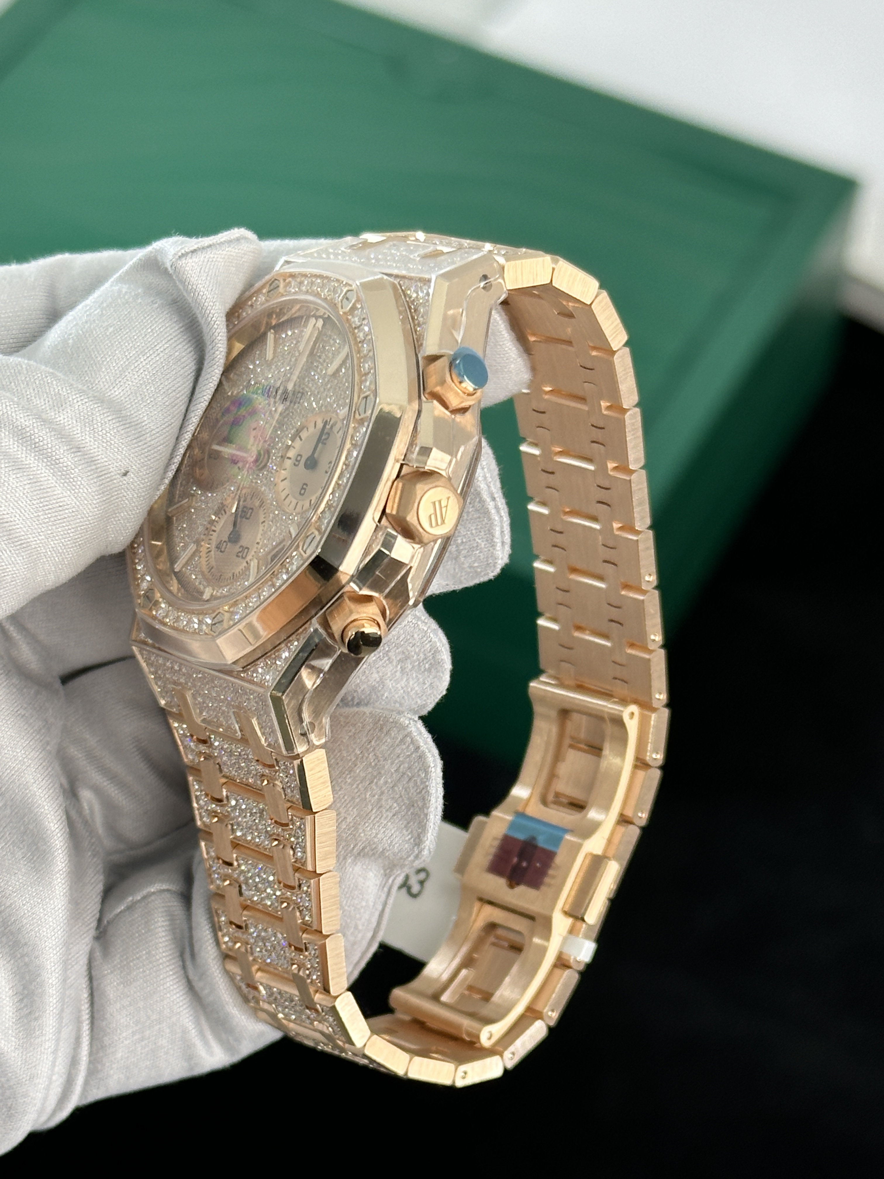 В мире часов и ювелирных изделий есть бренды, которые символизируют высший уровень мастерства и роскоши. Одним из таких брендов является Audemars Piguet, известный своими уникальными и изысканными часами. Именно от этого бренда мы предлагаем вам уникальный экземпляр - Royal Oak Chronograph 41mm Full Pave Diamonds.