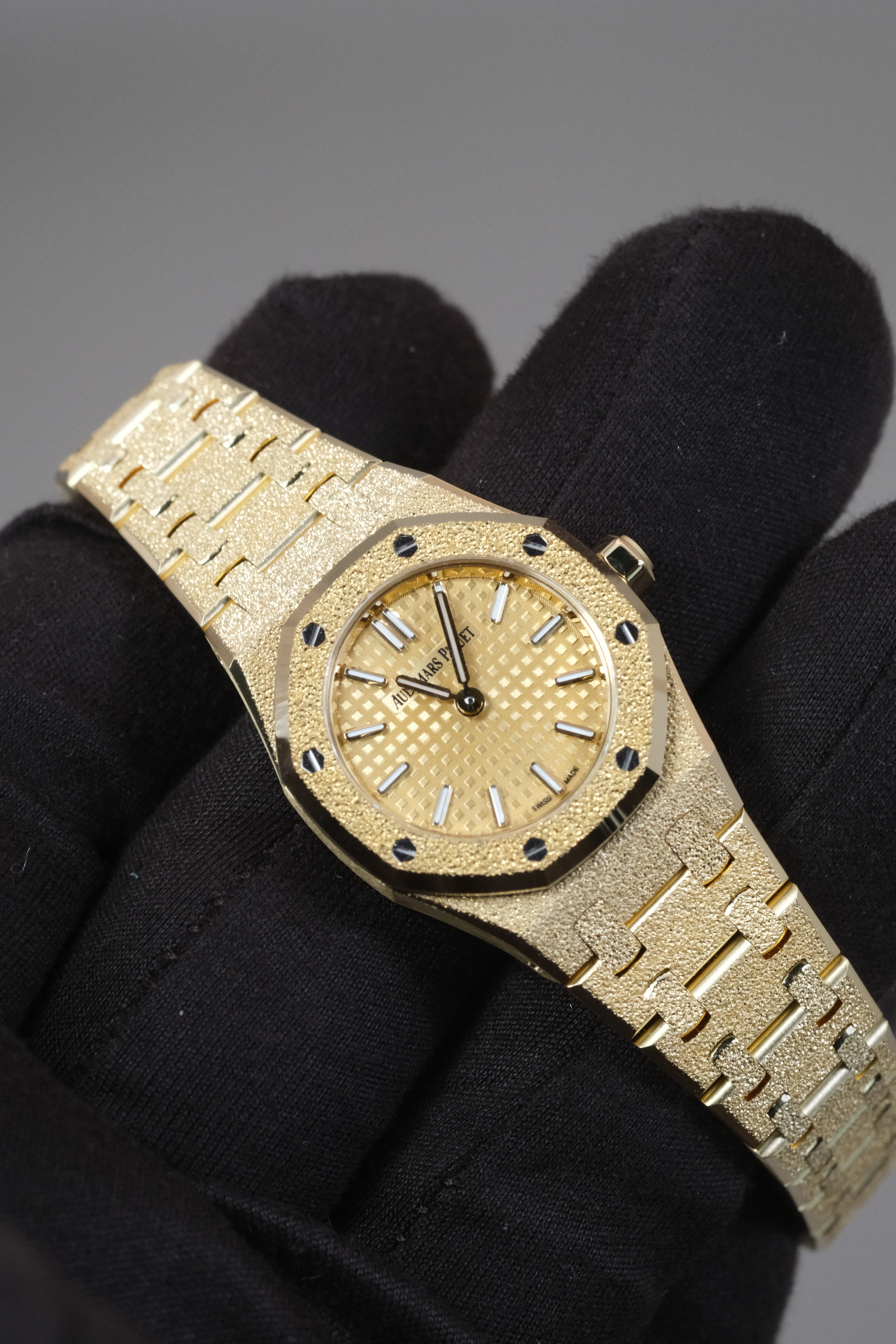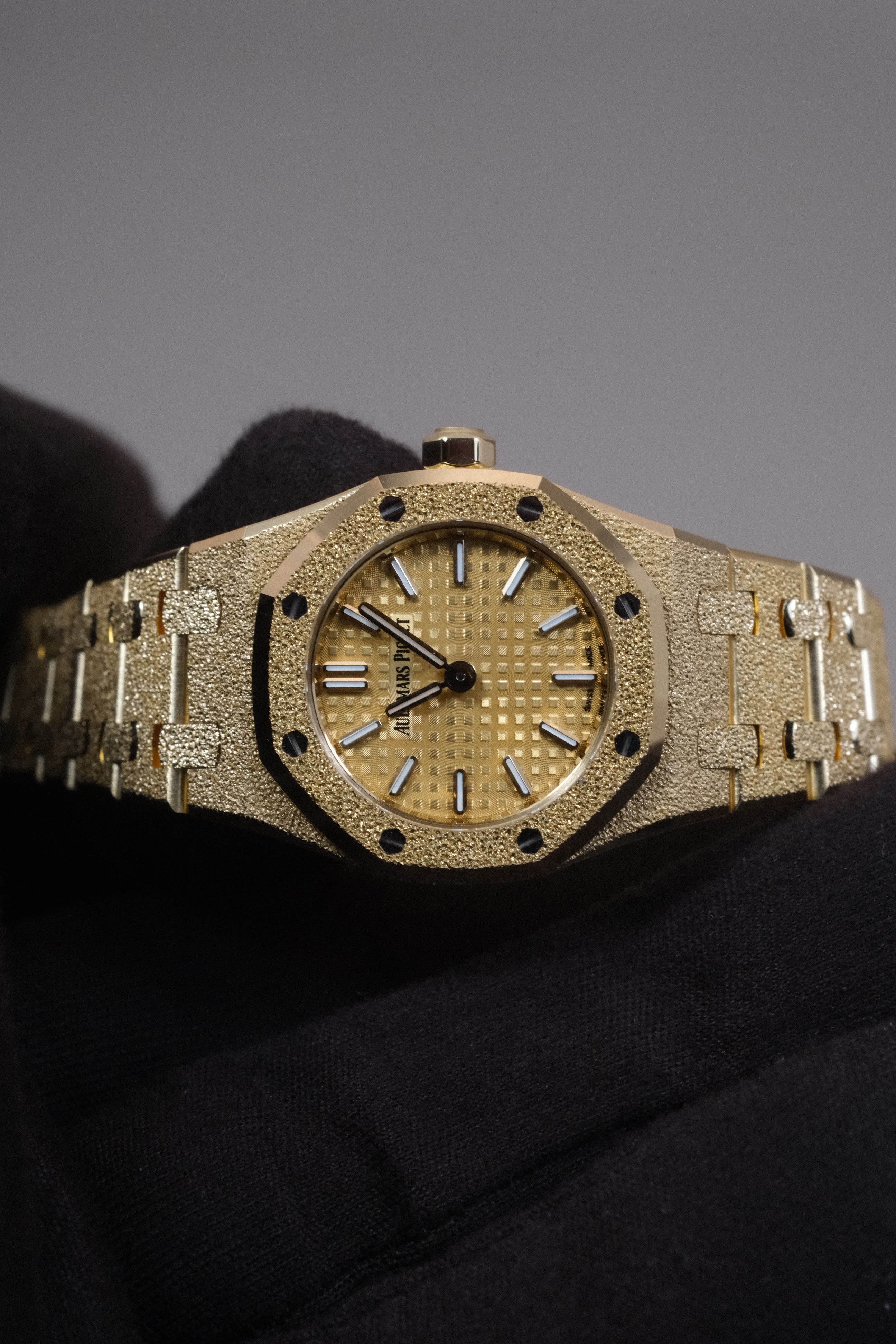 Не упустите возможность сделать подарок, который будет радовать вашу любимую не один год. Часы ROYAL OAK MINI FROSTED YELLOW GOLD 23MM от Audemars Piguet – это не просто аксессуар, это символ вашей любви и заботы.