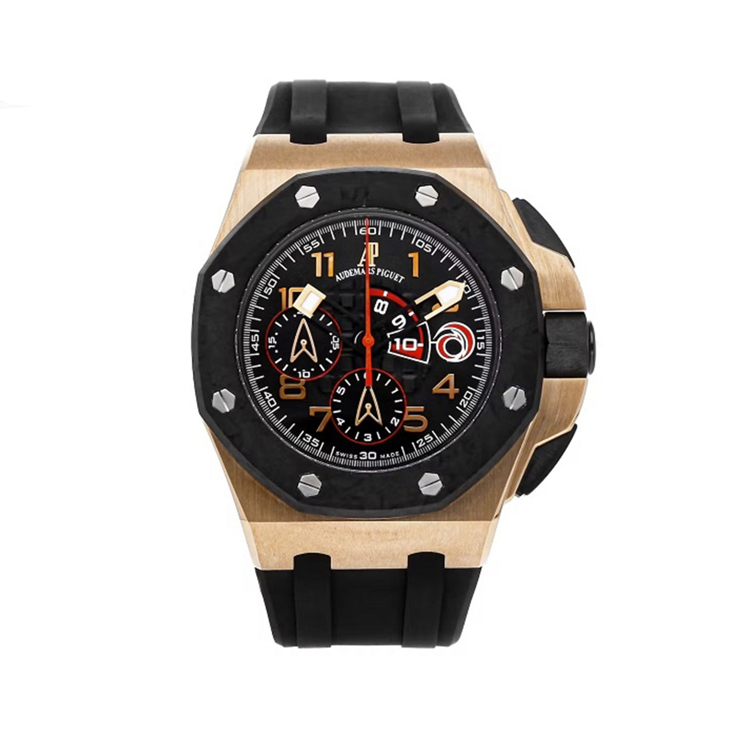 Вашему вниманию предлагается эксклюзивный шедевр швейцарского часового искусства - модель Royal Oak Offshore Alinghi Team Chronograph от легендарного бренда Audemars Piguet. Этот уникальный хронограф, выполненный из роскошного розового золота, станет идеальным аксессуаром для истинных ценителей высокого стиля и точности.