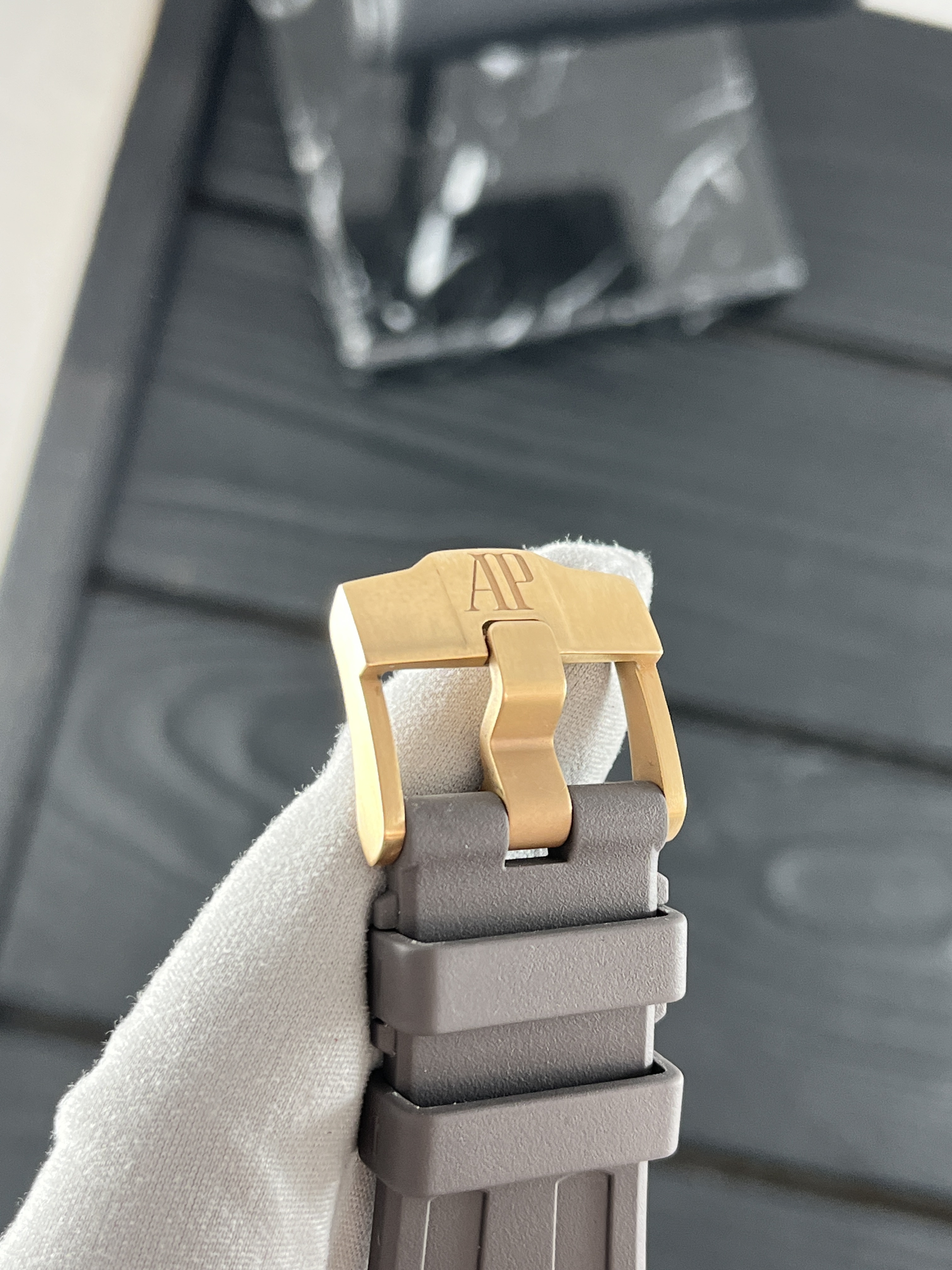 Корпус выполнен из роскошного розового золота, что придает часам особую изысканность и статусность. Ремешок из каучука обеспечивает комфортное ношение и подчеркивает спортивный характер модели. Сапфировое стекло не только защищает механизм от повреждений, но и позволяет насладиться его изяществом.