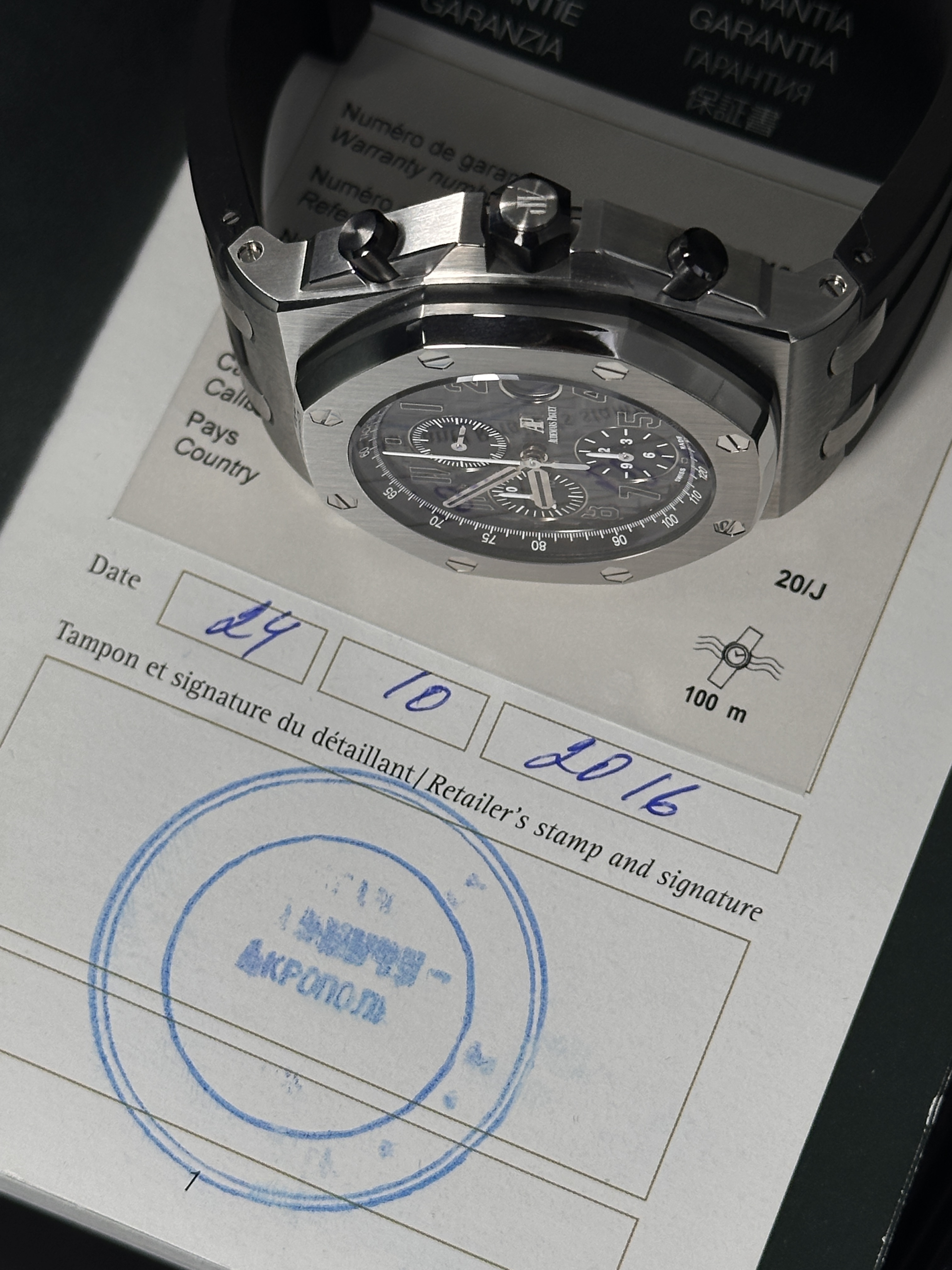 Каждый экземпляр Royal Oak Offshore Chronograph Grey, представленный в нашем салоне, находится в хорошем состоянии и прошел тщательную предпродажную подготовку. Мы гарантируем безопасность сделки, предоставляя полный пакет документов на товар. Кроме того, на часы предоставляется гарантия на 1 год, что подтверждает их высокое качество.