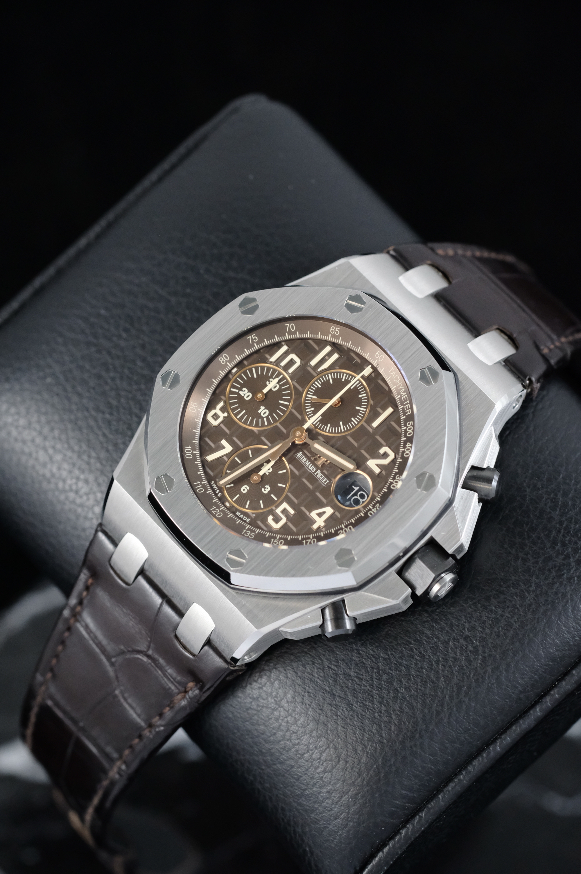 В мире часов и ювелирных изделий есть бренды, которые не нуждаются в представлении. Одним из таких имен является Audemars Piguet, известный своими шедеврами, которые сочетают в себе высокое качество, изысканный дизайн и непревзойденную функциональность. Именно поэтому мы с гордостью представляем вашему вниманию часы Royal Oak Offshore Chronograph Watch Brown Dial 42mm, которые являются настоящим украшением любой коллекции.
