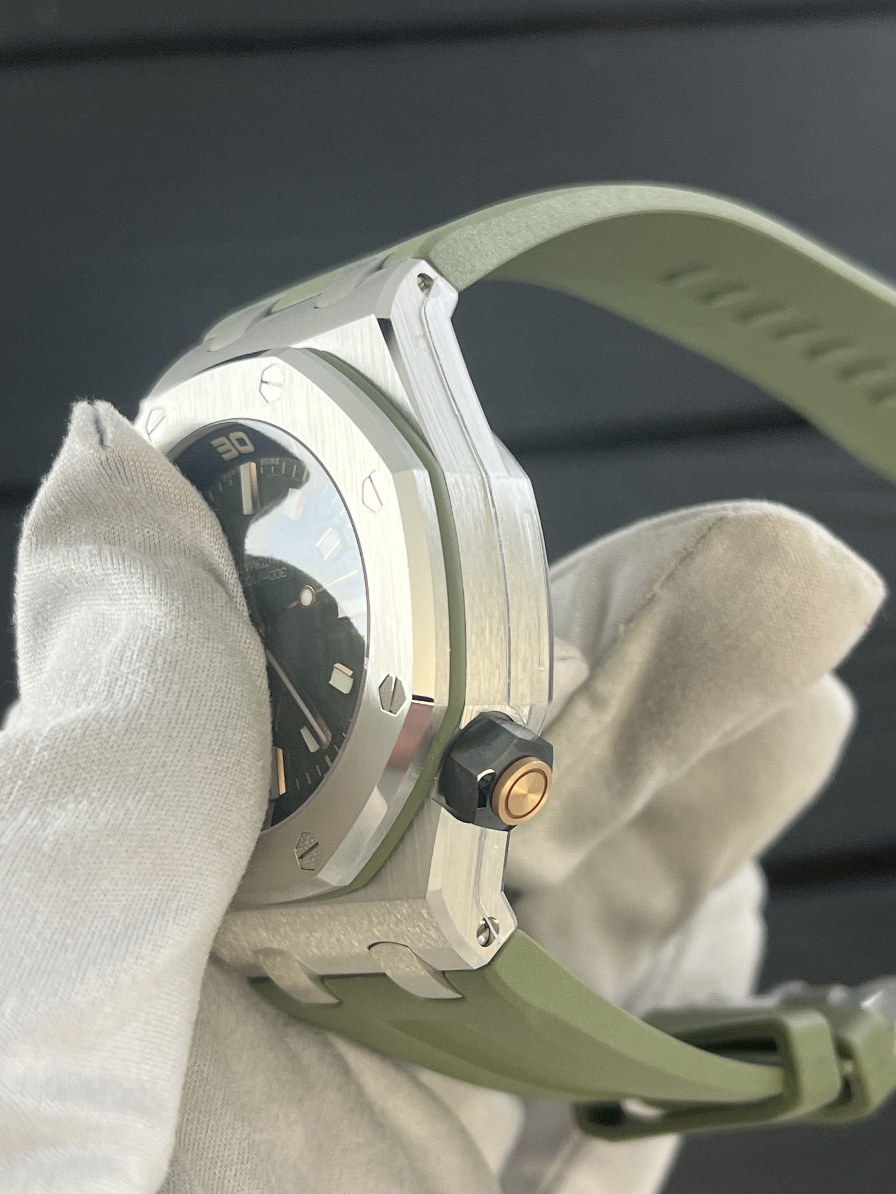 В мире часов и ювелирных изделий есть бренды, которые не нуждаются в представлении. Одним из таких именитых брендов является Audemars Piguet, известный своими уникальными и изысканными часами. Именно от этого бренда мы предлагаем вам уникальный экземпляр – часы Royal Oak Offshore Diver Green, модель 15720ST.OO.A052CA.01.
