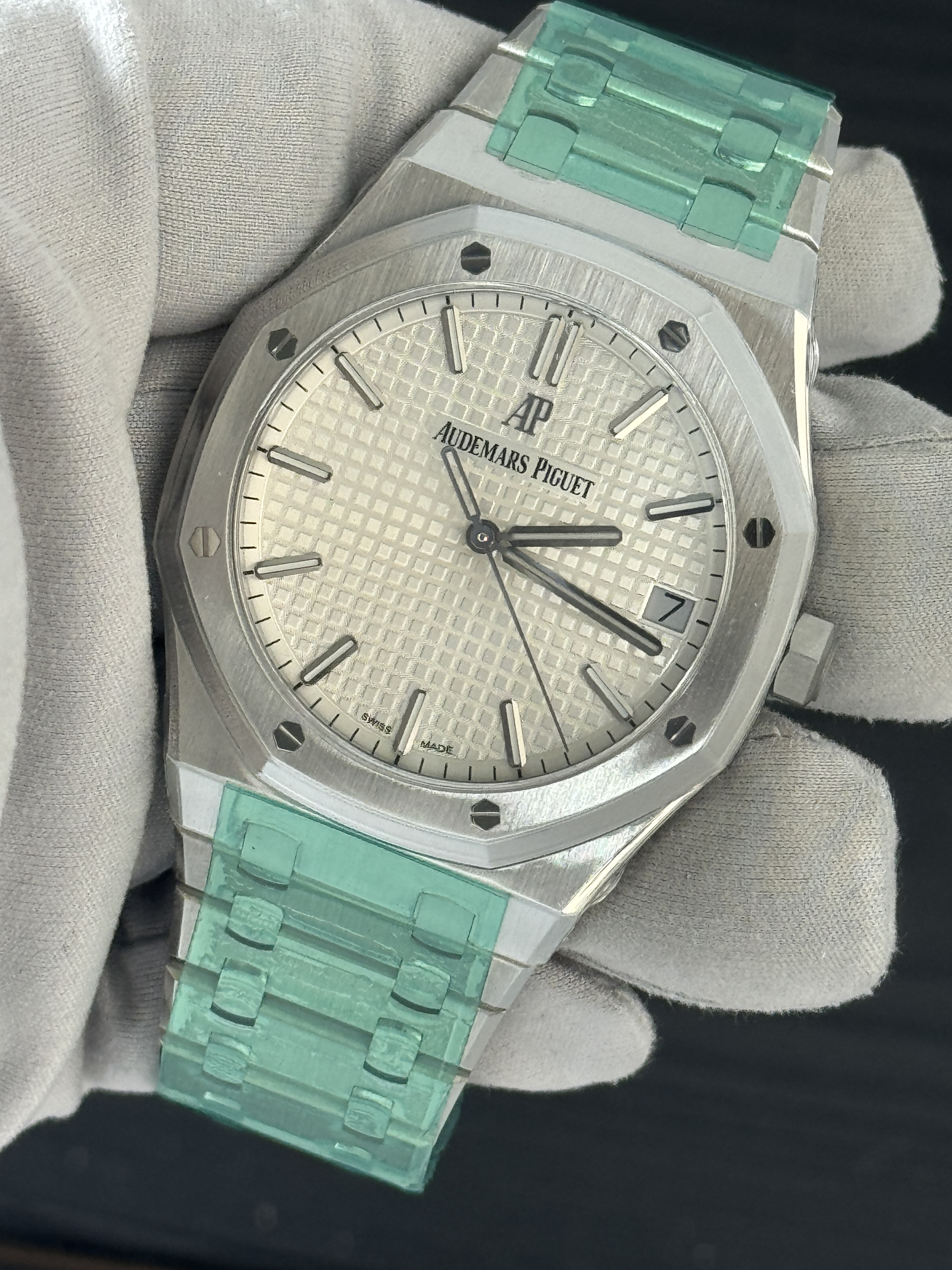 Каждый экземпляр часов Royal Oak Selfwinding White Dial 41 mm, представленный в салоне «Мануфактура», находится в идеальном состоянии и сопровождается полным комплектом документов и коробкой. Кроме того, на все часы предоставляется гарантия сроком на 5 лет, что является дополнительным подтверждением качества и надежности продукции.