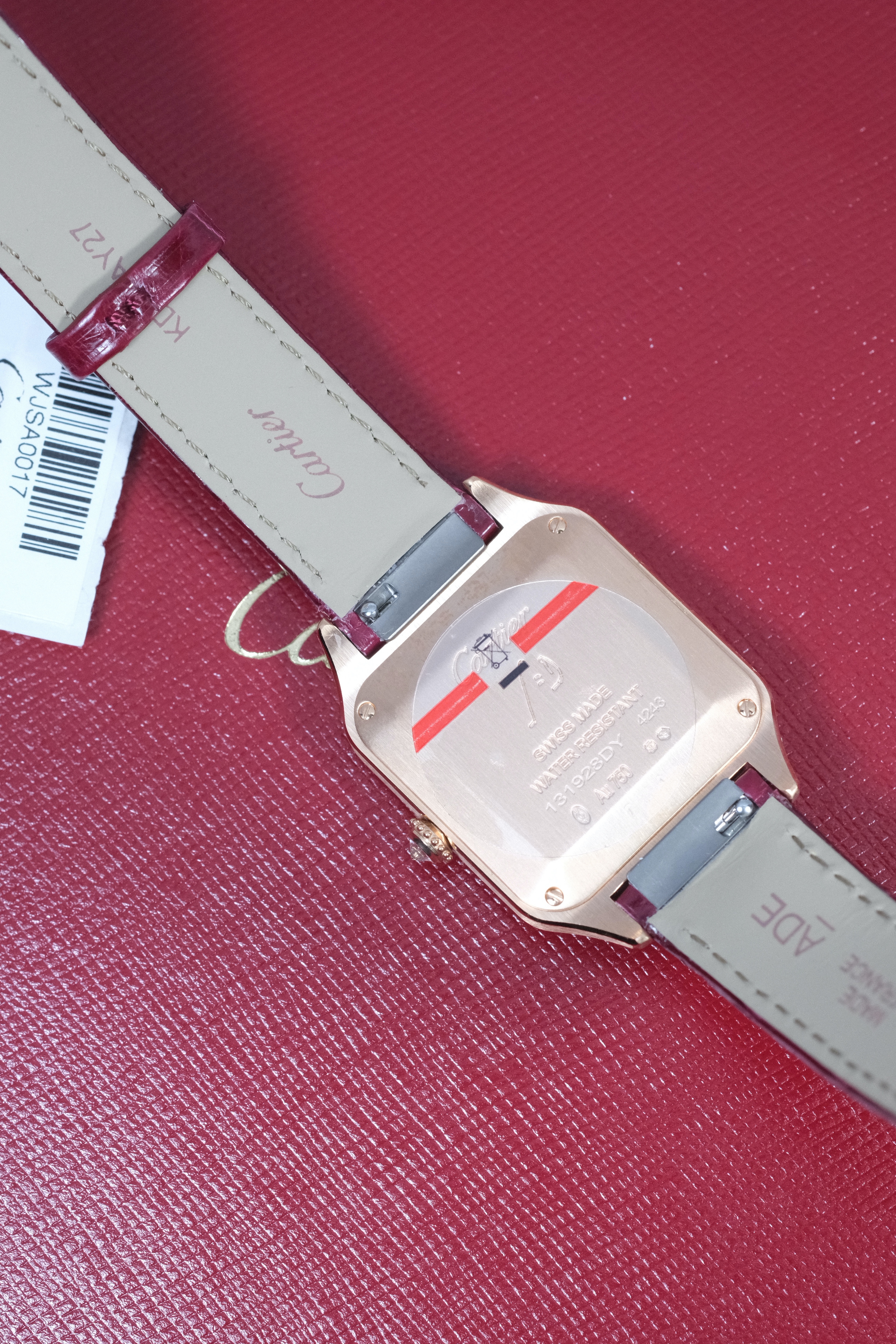 Cartier Santos-Dumont Rose Gold REF WJSA0017 – это изящные женские часы, воплощающие в себе классический дизайн и современную элегантность. Эта модель, вдохновленная историческими авиационными часами, созданными по заказу бразильского авиатора Альберто Сантос-Дюмона, стала одним из самых узнаваемых и востребованных аксессуаров Cartier.