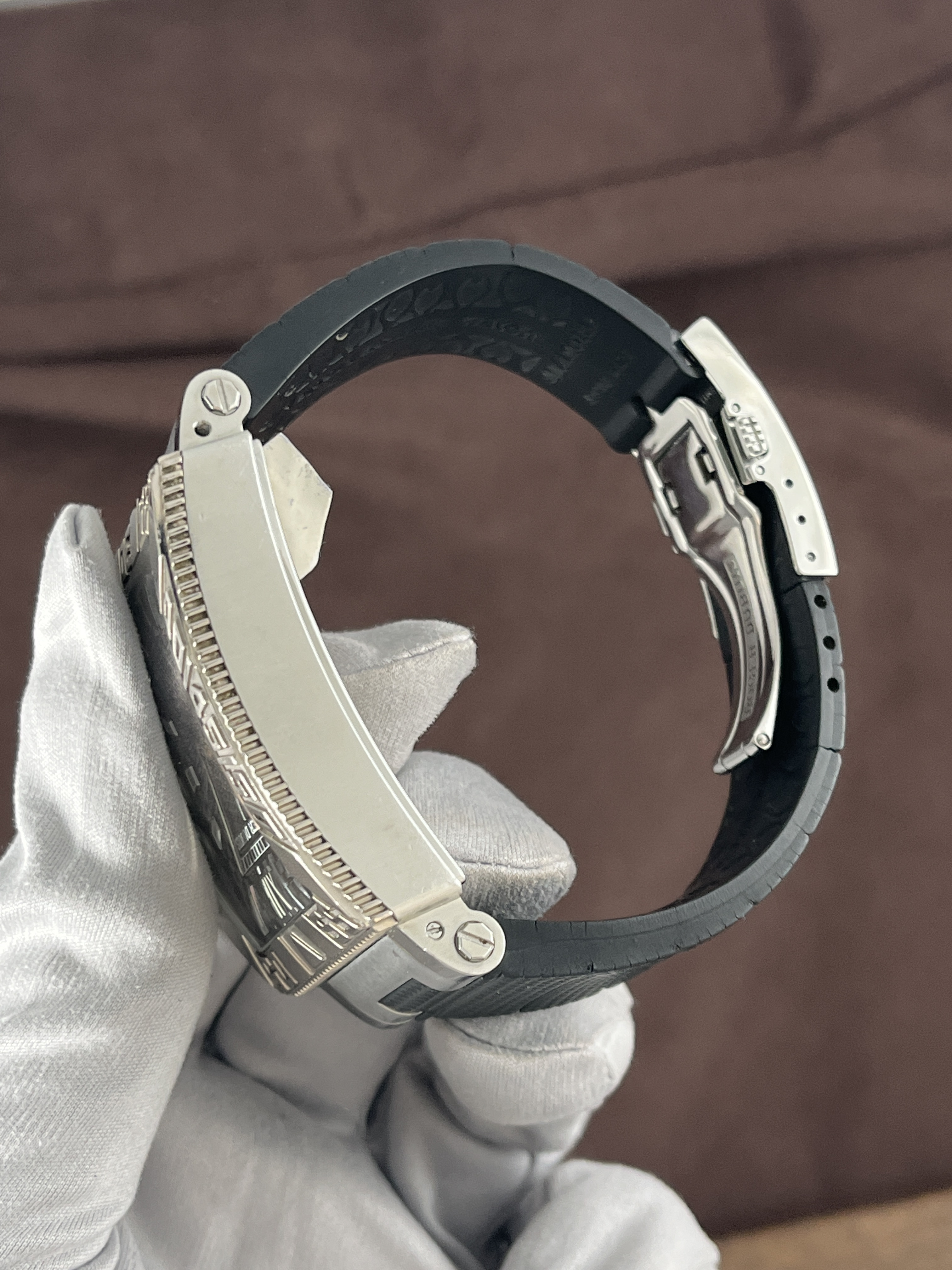 Корпус часов изготовлен из прочной стали, что обеспечивает долговечность и надежность. Размер корпуса составляет 47 на 43 мм, что делает его удобным для ношения на мужской руке. Ремешок из каучука не только обеспечивает комфортное ношение, но и добавляет спортивный штрих в общий дизайн.