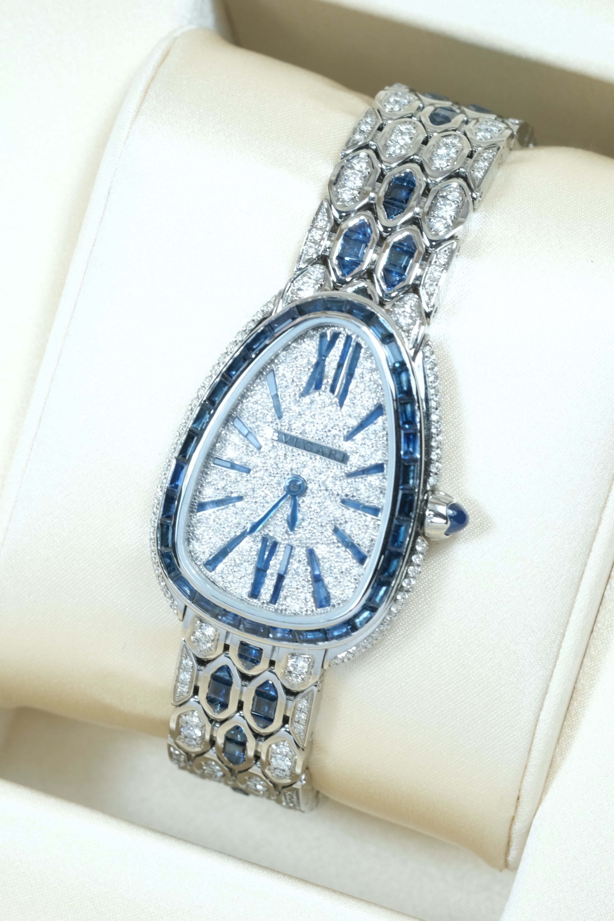 В мире часов и ювелирных изделий есть бренды, которые не нуждаются в представлении, и Bvlgari, безусловно, является одним из них. Серия Serpenti Seduttori Custom Diamonds & Sapphires – это воплощение элегантности и изысканности, которое не оставит равнодушным ни одну женщину. Эти часы – настоящий шедевр, который сочетает в себе современный дизайн и классические элементы, характерные для итальянского бренда.