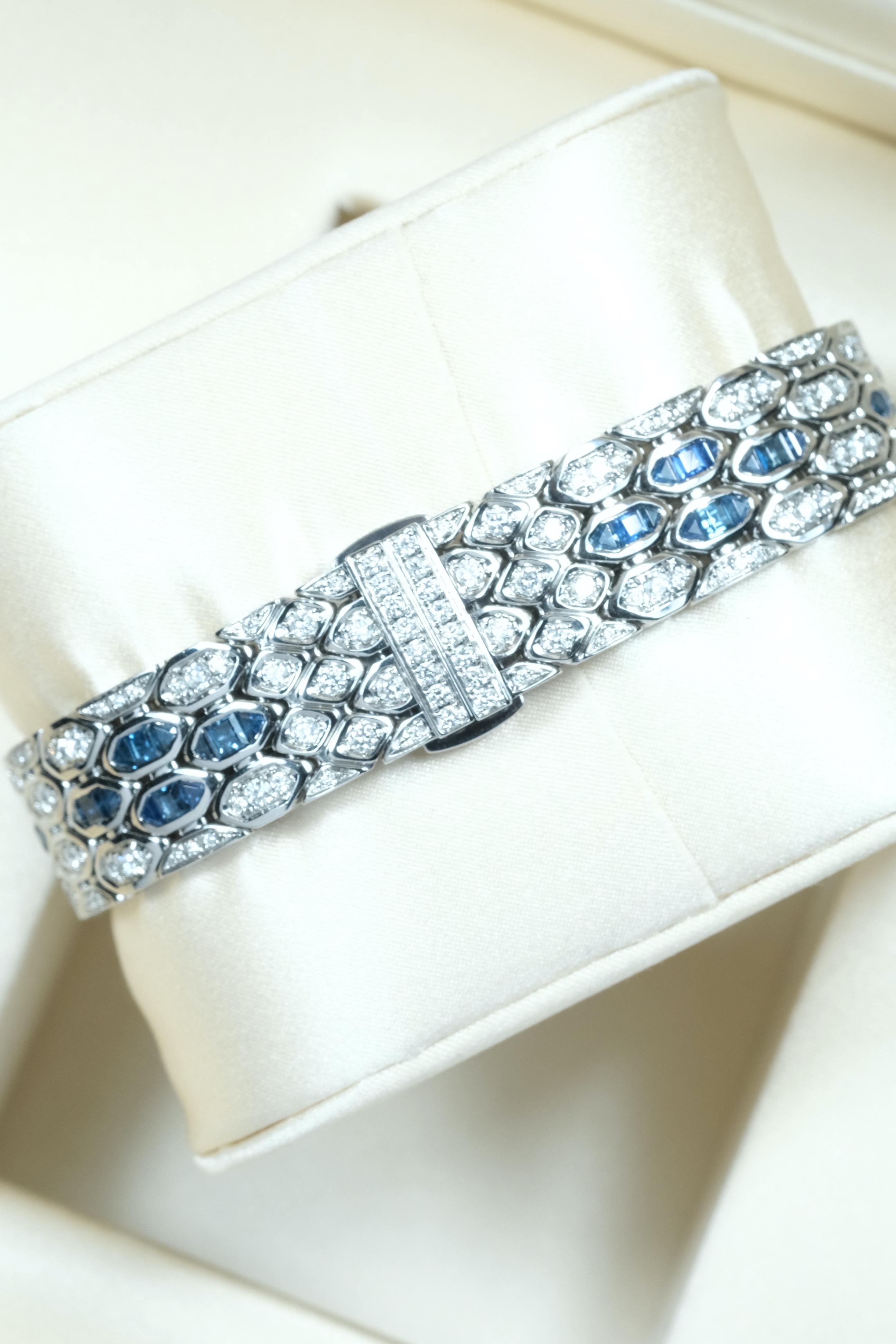 Одним из главных украшений этих часов являются бриллианты и сапфиры, которые были искусно вставлены в корпус и браслет. Они добавляют часам дополнительный блеск и делают их настоящим произведением искусства.