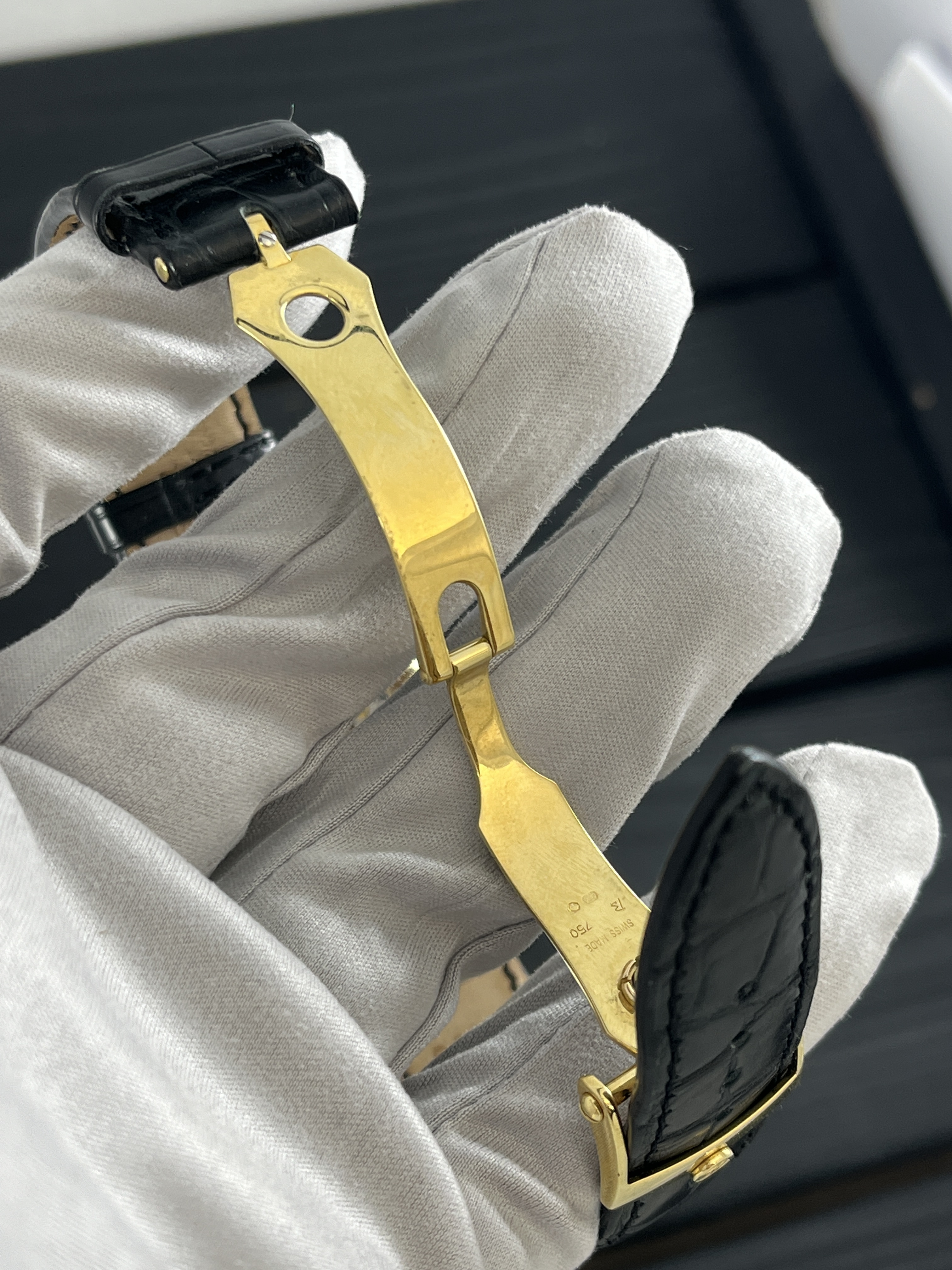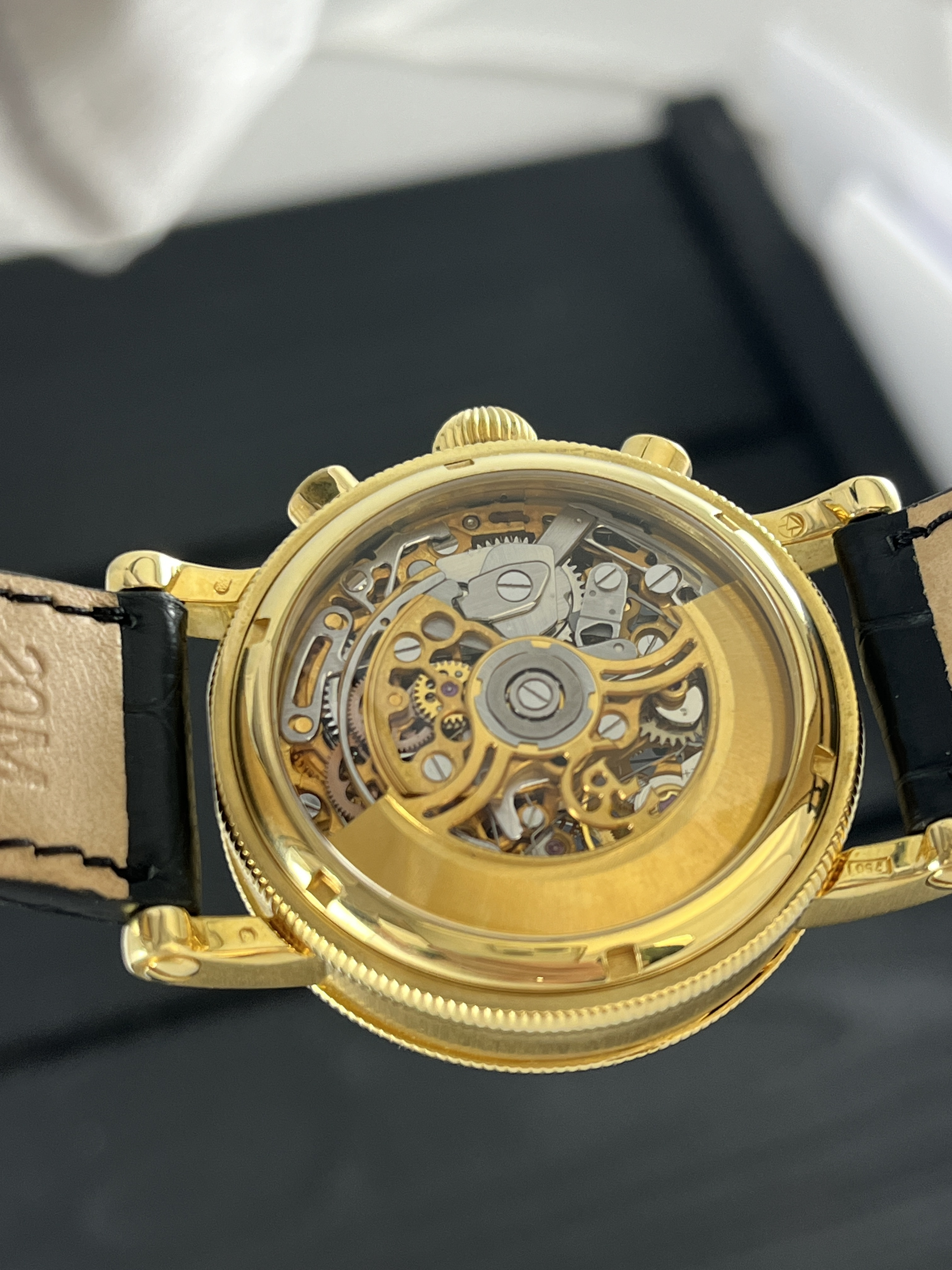 Эти мужские часы, выполненные из розового золота, поражают своей изысканностью и элегантностью. Их корпус, диаметром 38 мм, не только украшает руку, но и является произведением искусства благодаря сложной механике с автоподзаводом. Каждый элемент часов, от механизма до ремешка из натуральной кожи, свидетельствует о высочайшем уровне мастерства и внимании к деталям.
