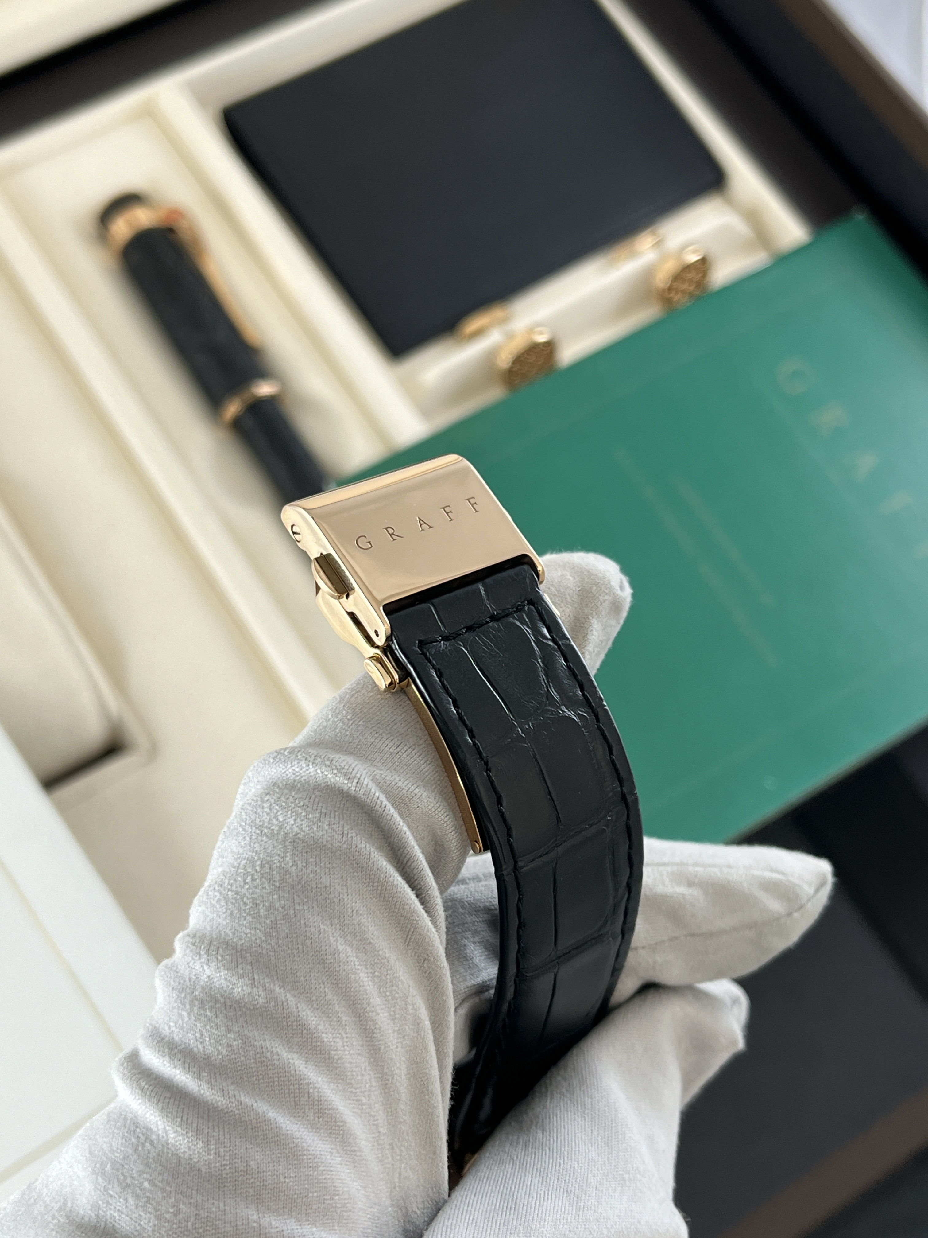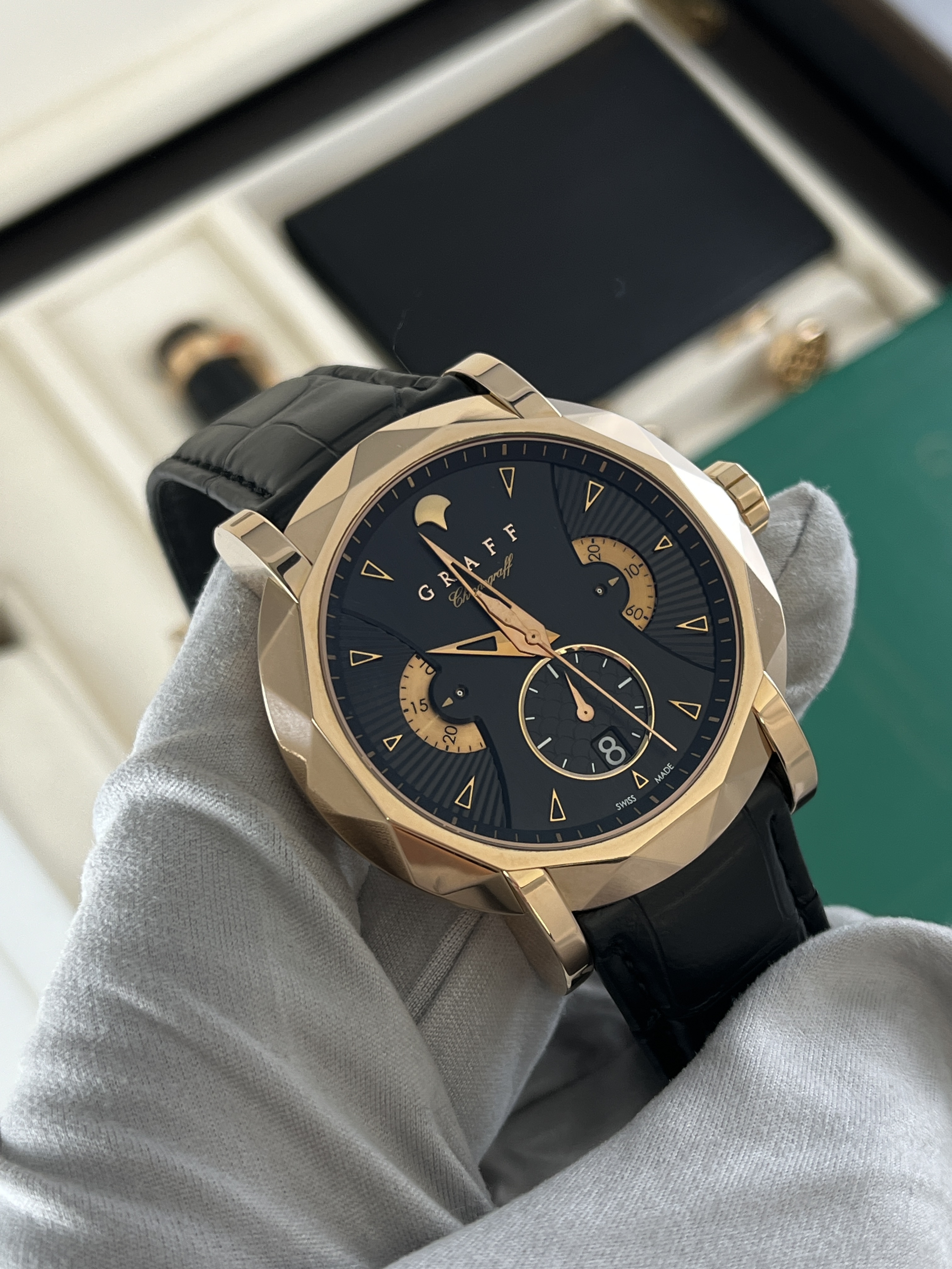 Вашему вниманию предлагается эксклюзивный шедевр часового искусства - модель SPORT CHRONOGRAFF 45 MM от знаменитого бренда Graff. Этот мужской хронограф, выпущенный в 2019 году, поражает своей изысканностью и функциональностью. Корпус из розового золота придает часам особую элегантность и статусность, а кожаный ремешок обеспечивает комфортное ношение.