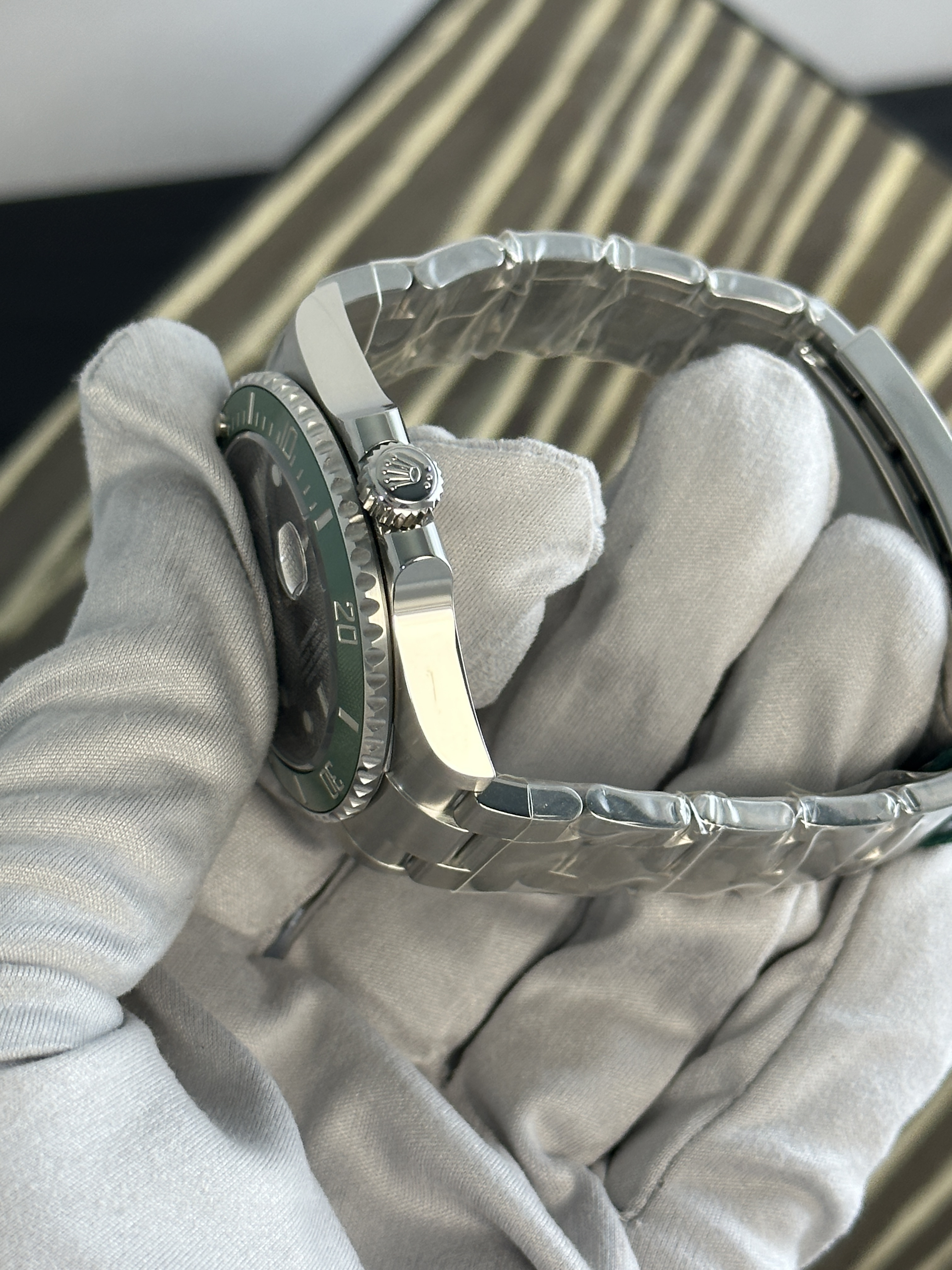 Каждый экземпляр Submariner 41mm Starbucks, представленный в нашем салоне, находится в идеальном состоянии и сопровождается полным комплектом документов, включая коробку и гарантию на 5 лет. Это гарантирует не только качество продукции, но и безопасность сделки.