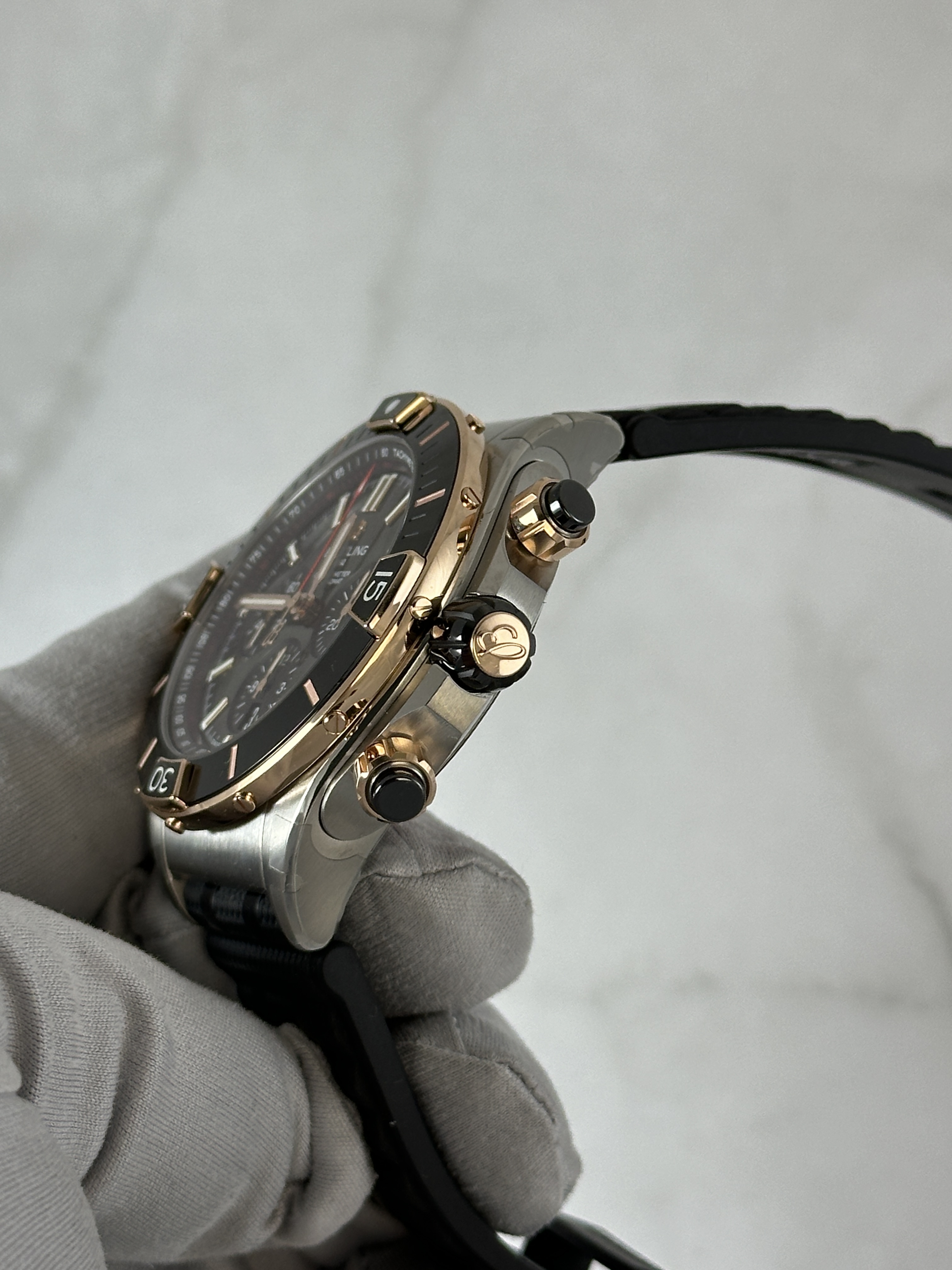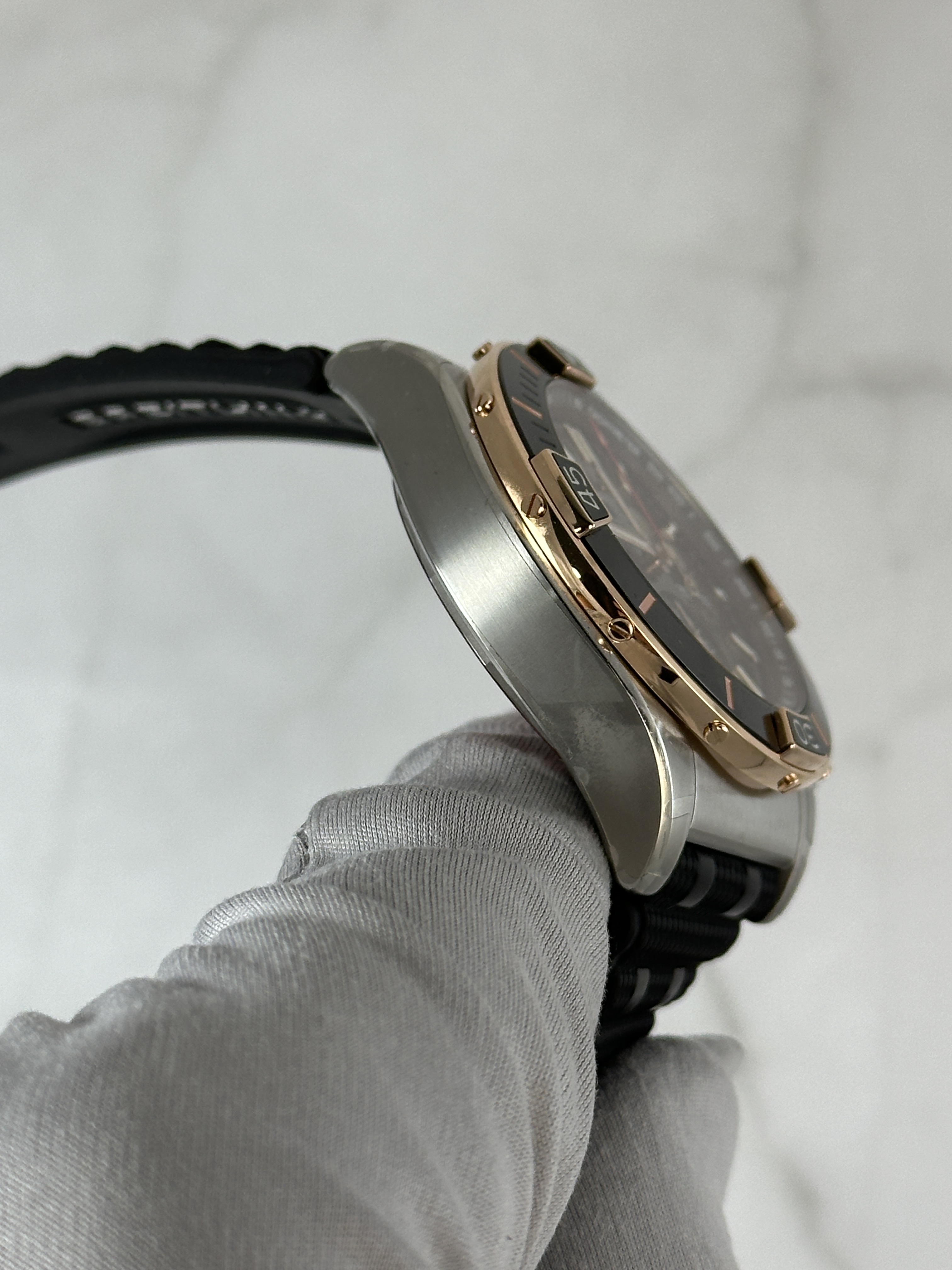 Эти мужские часы оснащены механизмом с автоподзаводом, что обеспечивает длительный срок службы без необходимости в частой зарядке. Корпус изготовлен из стали, розового золота и керамики, что придает часам прочность и изысканный внешний вид. Ремешок из каучука обеспечивает комфортное ношение и подходит для активного образа жизни.