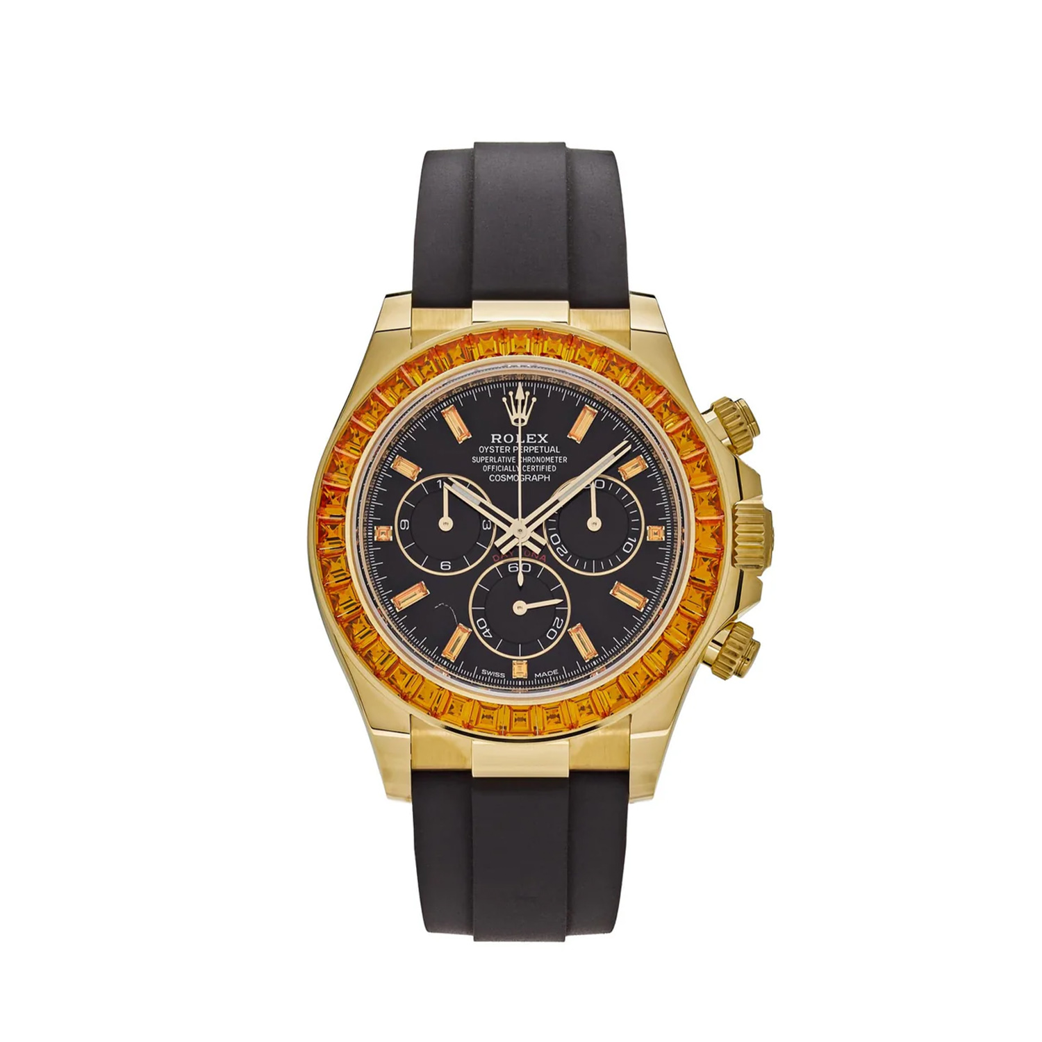 Модель 116509 FIX оснащена калибром 4130, который обеспечивает точность и надежность хода, а также обладает функциями автоподзавода и хронографа. Сапфировое стекло не только защищает механизм от повреждений, но и добавляет изделию дополнительный блеск и роскошь.