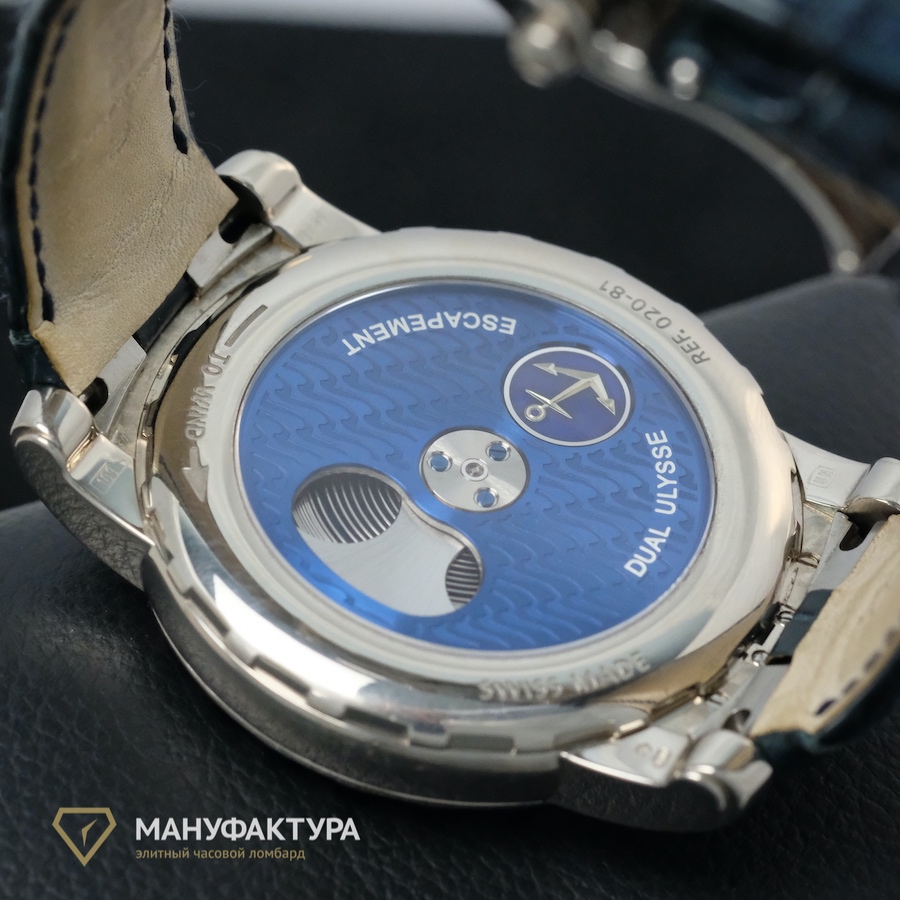 Freak Blue Phantom – это мужские часы, выполненные из белого золота, что придает им особую изысканность и элегантность. Размер корпуса составляет 44,5 мм, что делает их идеальными для тех, кто ценит комфорт и стиль. Ремешок из натуральной кожи добавляет изделию дополнительный штрих элегантности и подчеркивает его статусный характер.