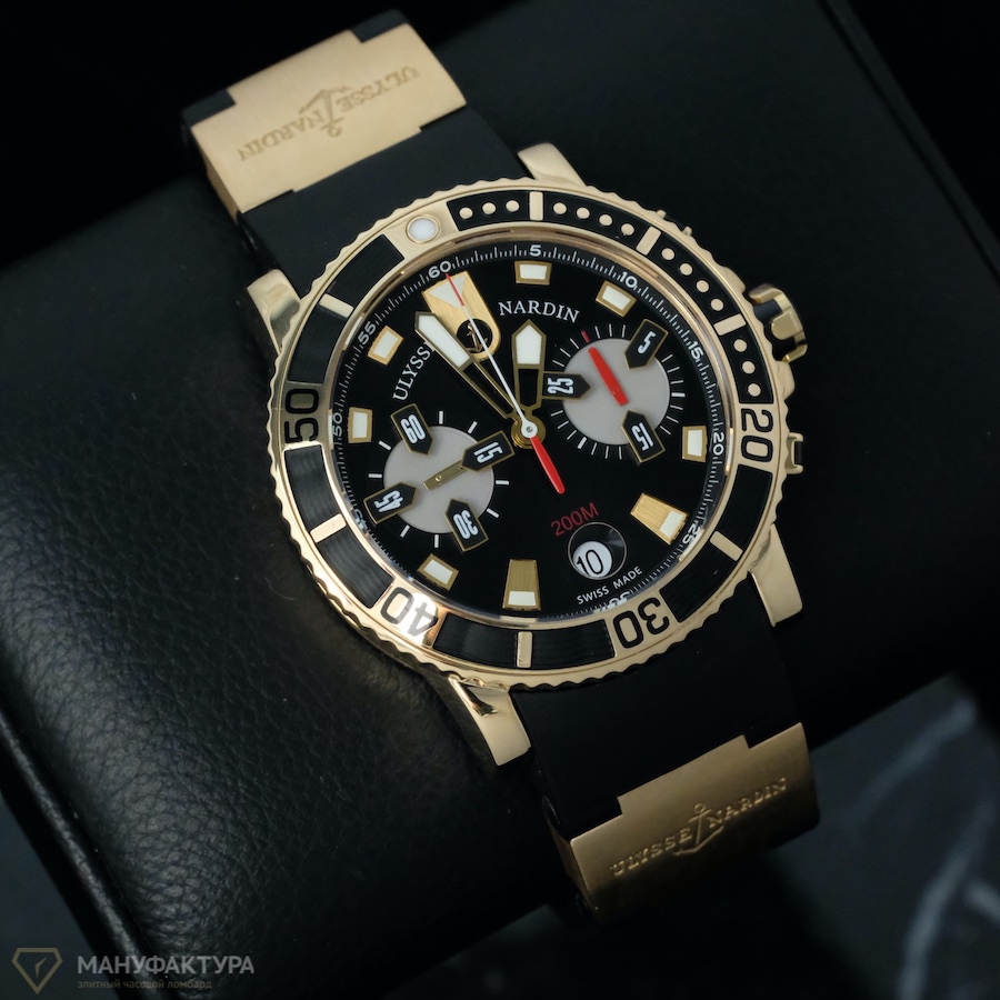 В поисках идеальных часов, которые сочетают в себе элегантность, функциональность и непревзойденное качество? Ваш выбор – часы Marine Diver Chronograph от бренда Ulysse Nardin, представленные в нашем часовом салоне «Мануфактура». Эти шедевры швейцарского часового искусства предлагают не только изысканный дизайн, но и высокую точность и надежность, благодаря механическому калибру с автоподзаводом и хронографом.