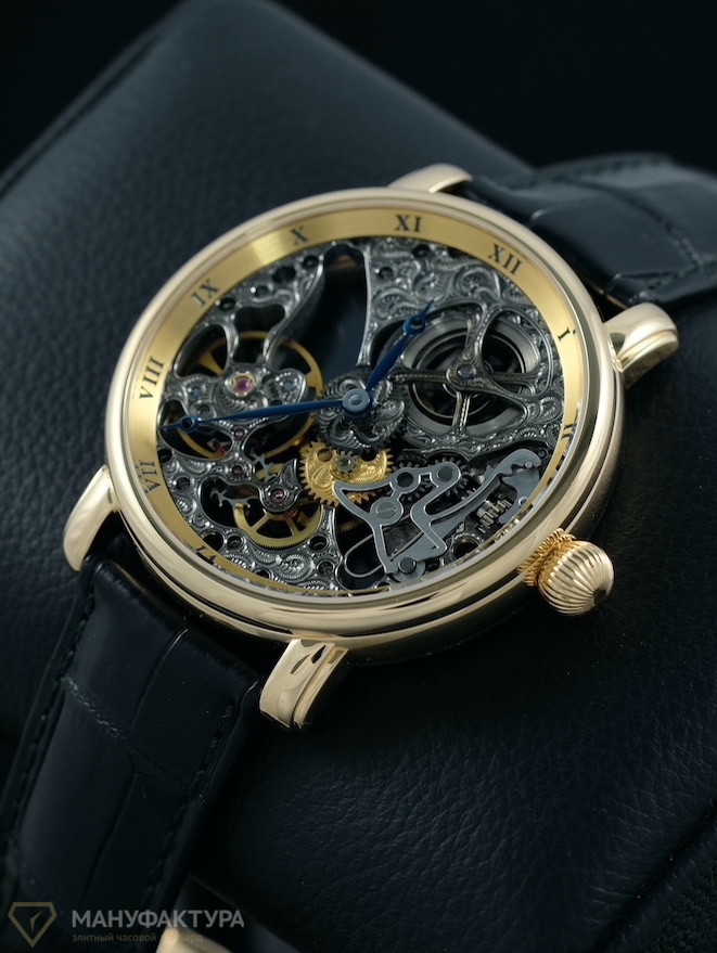 Сапфировое стекло позволяет насладиться изысканными деталями механизма, который работает на ручном заводе. Это не просто часы, а настоящее произведение искусства, которое будет радовать глаз каждый день.