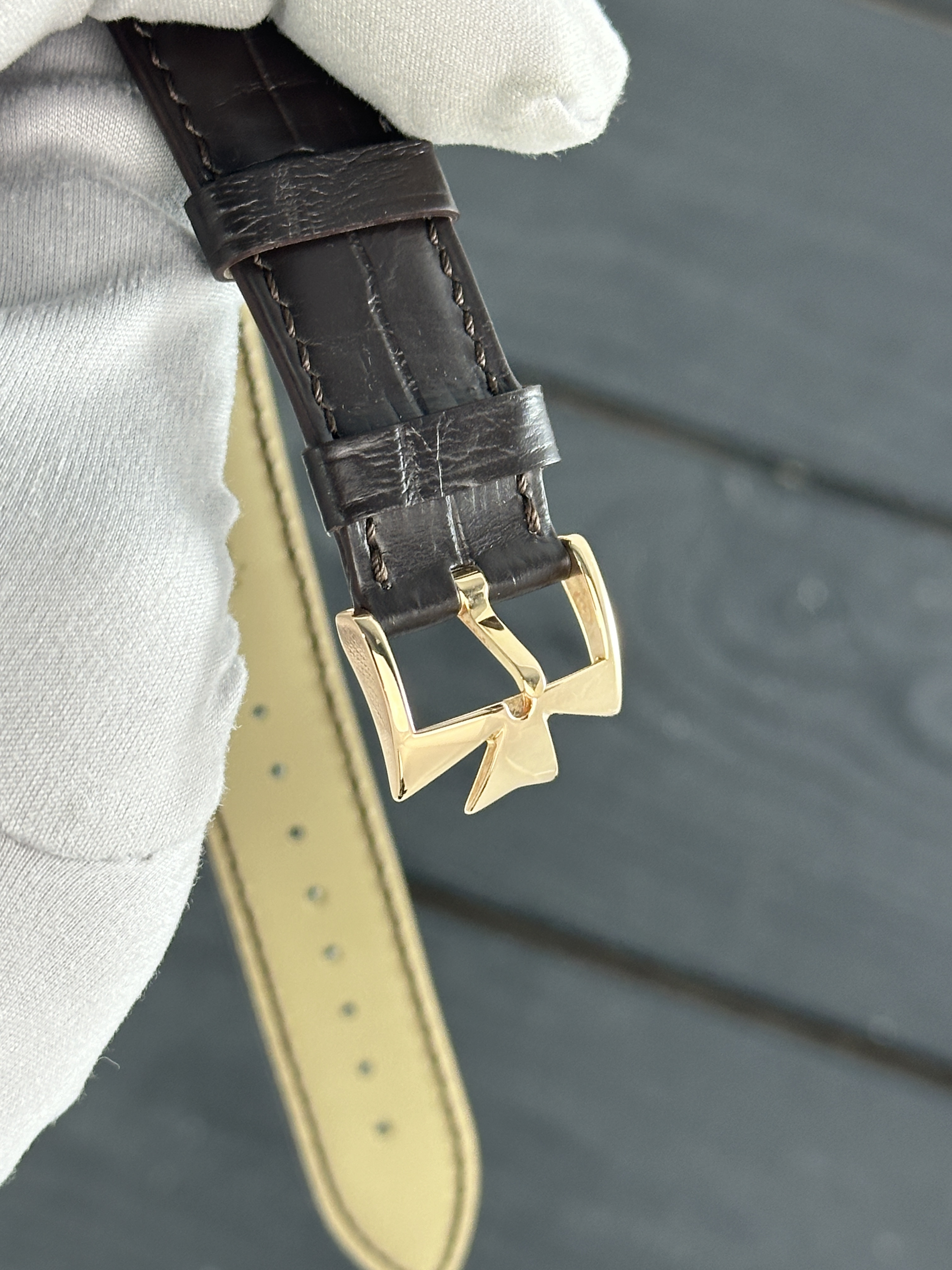 Эти часы не просто украшение для вашего запястья, а настоящий символ статуса и вкуса. Их корпус выполнен из роскошного розового золота, что придает им особую изысканность и элегантность. Размер корпуса составляет 39 мм, что делает их идеальными для мужской руки. Ремешок из высококачествной кожи добавляет дополнительный акцент на комфорт и стиль.