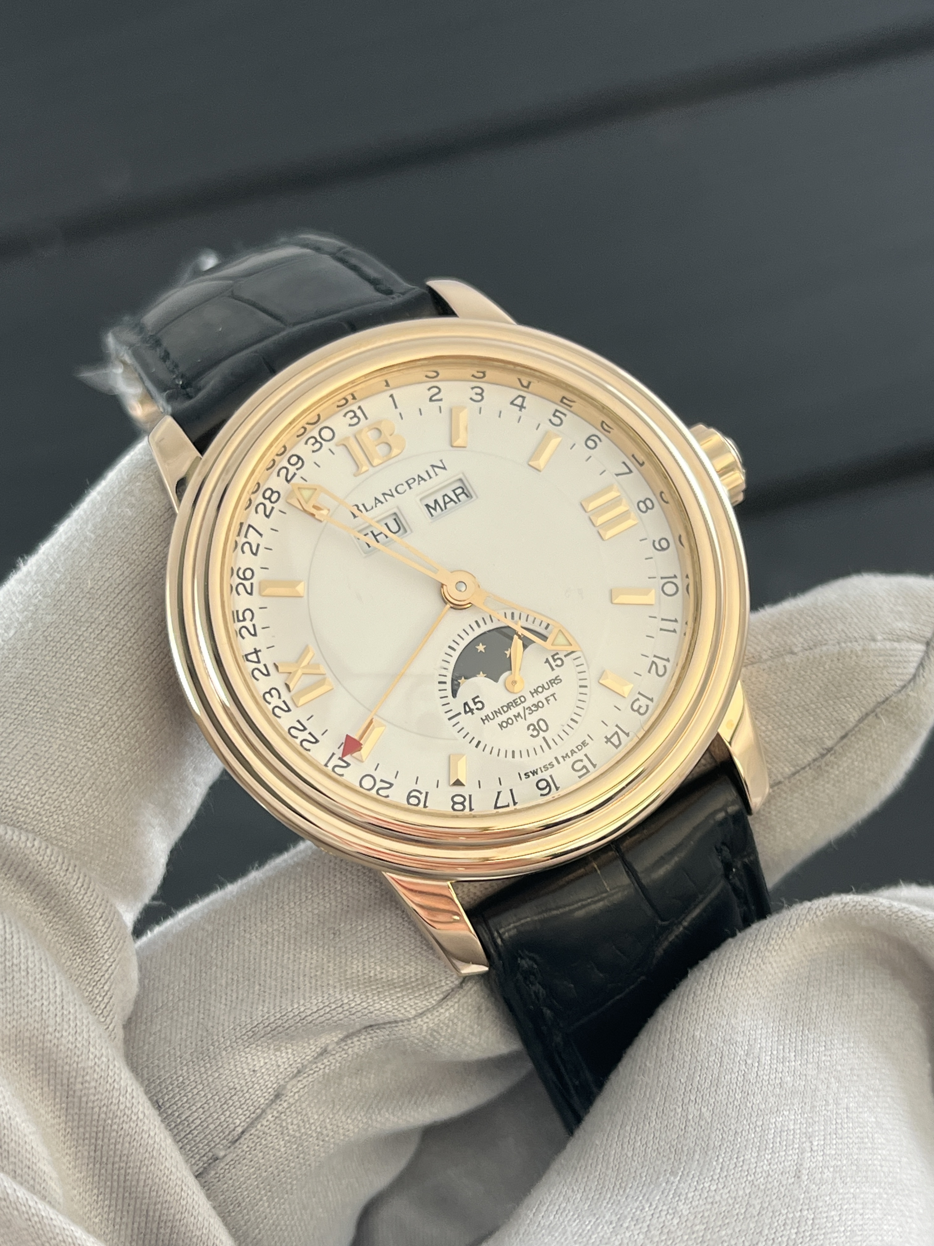 В мире швейцарских часов существует особая категория изделий, которые не просто отражают время, но и являются произведениями искусства. Одним из таких шедевров является модель YELLOW GOLD TRIPLE CALENDAR WITH MOON PHASES от известного бренда Blancpain. Этот часовой механизм, представленный в нашем часовом салоне «Мануфактура», является идеальным выбором для тех, кто ценит не только точность и надежность, но и элегантность и изысканность.